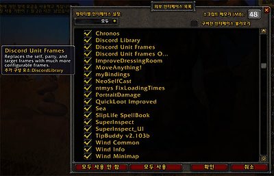 와우내에서 애드온이 정상적으로 인식이 되어 사용가능합니다.