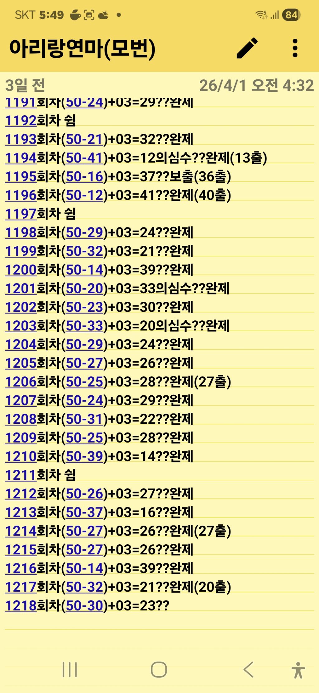 1218 회차 제외수 작성자부산아리랑연마|작성시간26.04.04|조회수197 목록 댓글 15 글자크기 작게가 글자크기 크게가 본인수는 챙기셔유 다음검색 현재 게시글 추가 기능 열기 북마크 공유하기 신고 센터로 신고 댓글 댓글 15 댓글쓰기 답글쓰기 댓글 리스트 작성자황금보석 | 작성시간 26.04.04 감사합니다 작성자10월의너와나 | 작성시간 26.04.04 감사합니다 작성자남산동 | 작성시간 26.04.04 감사합니다 작성자작은소망 | 작성시간 26.04.04 감사합니다 작성자1등당첨으로한방에정리 | 작성시간 26.04.04 감사합니다 댓글 전체보기