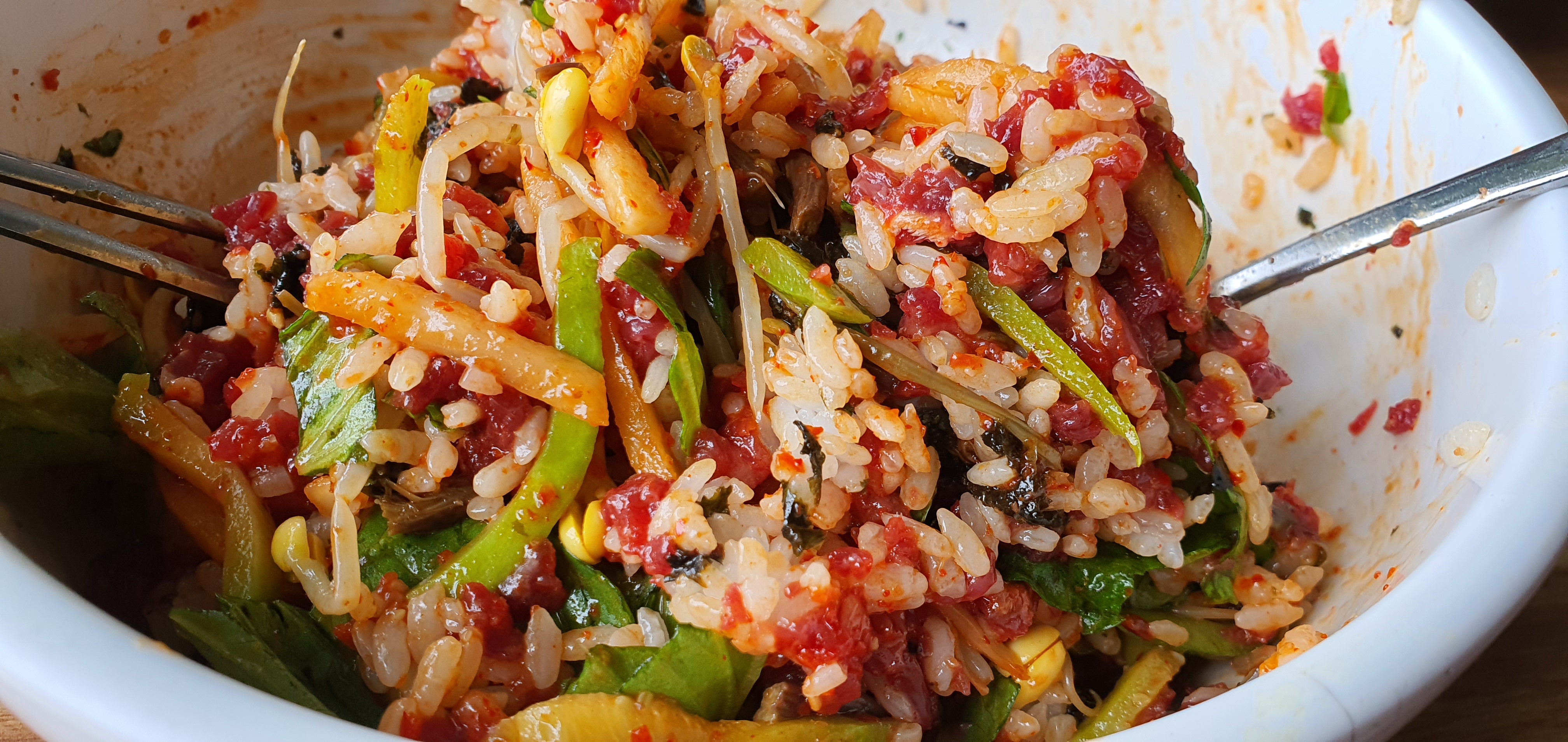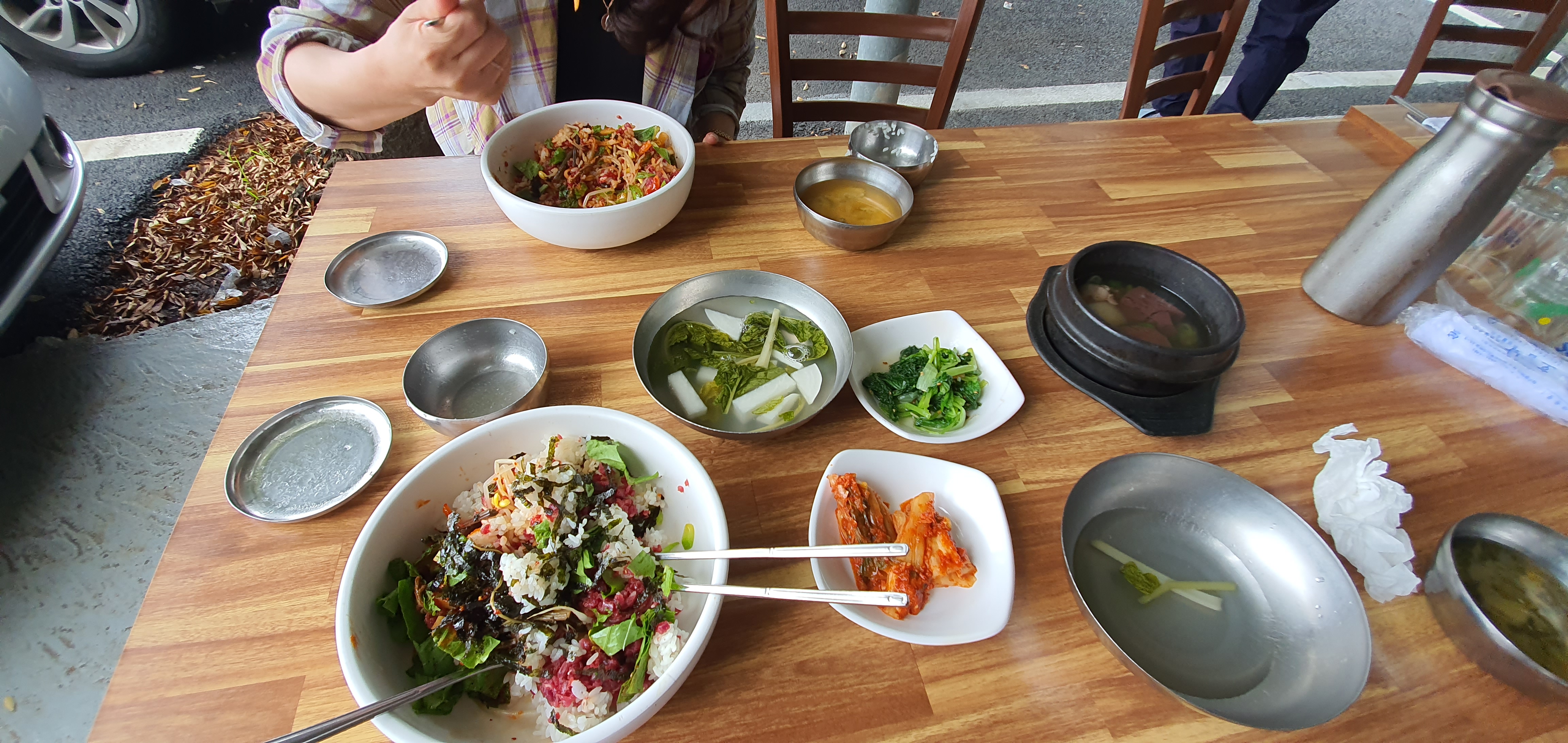 호남고속도로 광주에서 순천방향으로가다보면 옥과IC를 들어와 옥과마을 초입자리에 #옥과한우촌맛집 이야기입니다. 한우를 재료로 하여 다양한 음식으로 맛집입니다. 점심때 찿아온 곳으로 생비육회비빔밥을 주문하고 맛있게 싹싹비웠습니다.야외 데이블까지 있어 더욱 식사를 감칠맛 나게 잘먹고 왔습니다.주변에 어르신과 직장인.그리고 골프운동하고와서 먹는 식당으로 모두가 맛점하는 곳입니다. 꼭 한우비빔밥 드시러 옥과에 오세요.