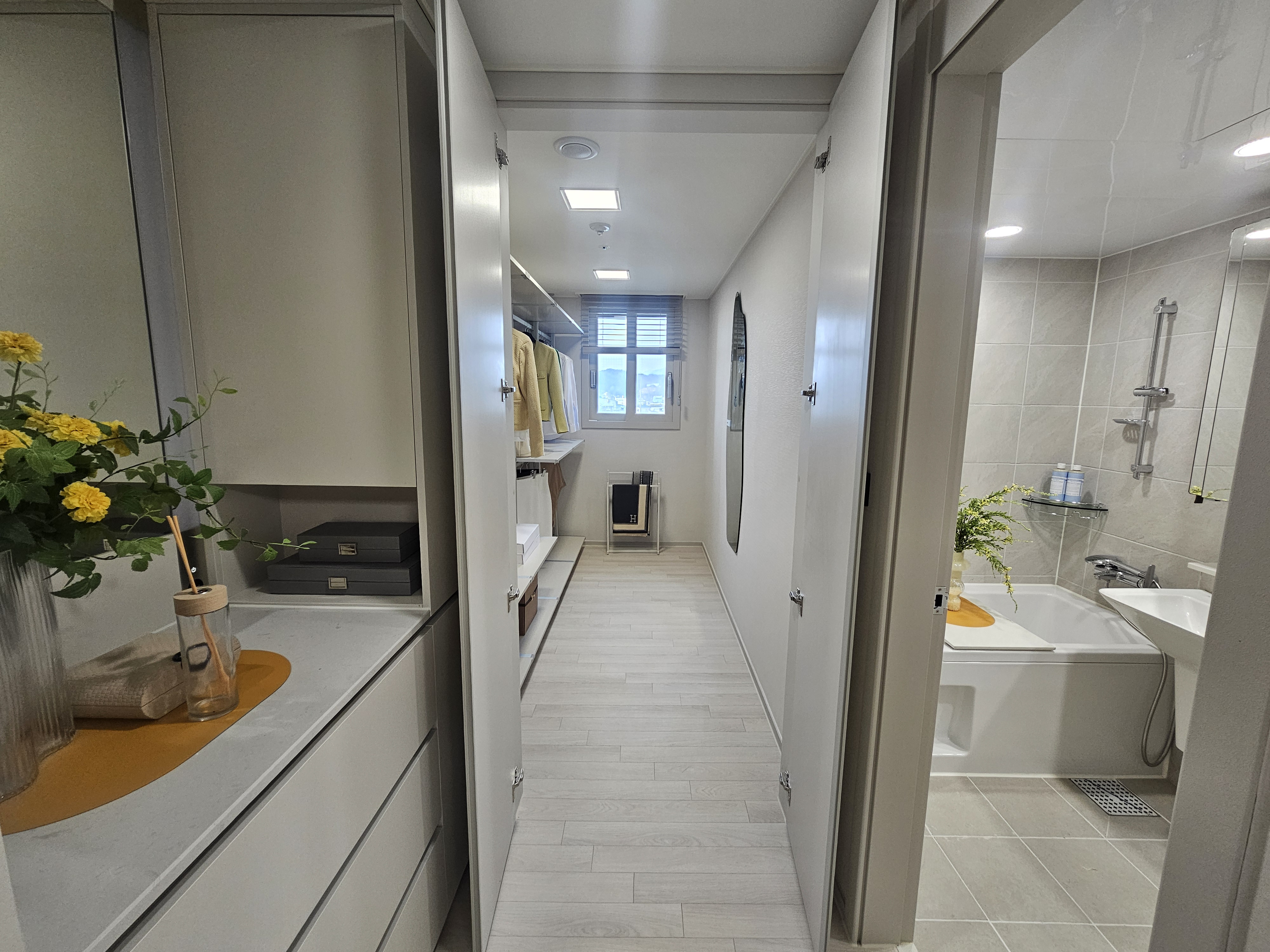 옵션 전체 무상 시공을 내세워, 모델하우스와 동일한 수준으로 입주 가능하다고 홍보(붙박이장, 드레스룸 등 기본 제공 안내).