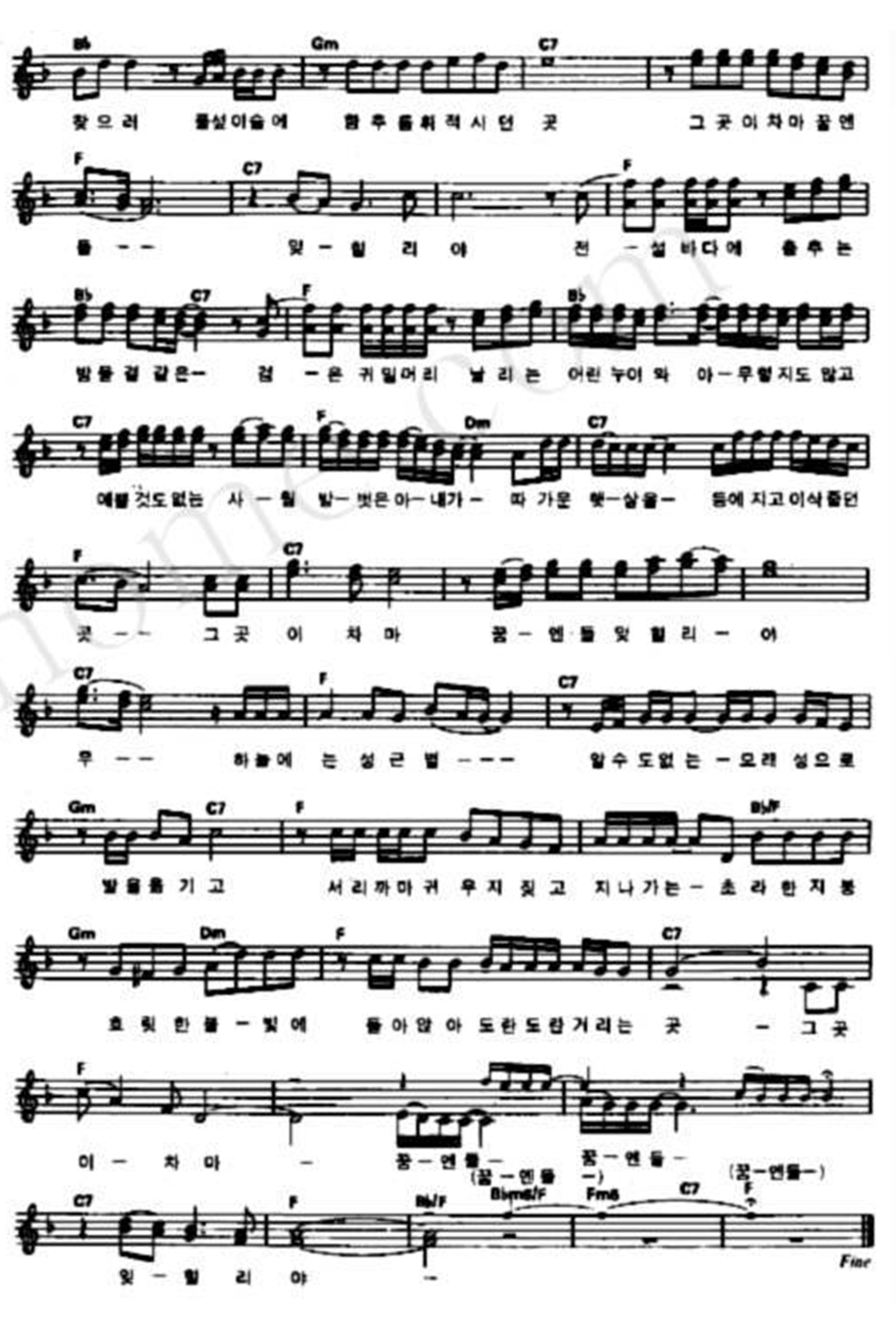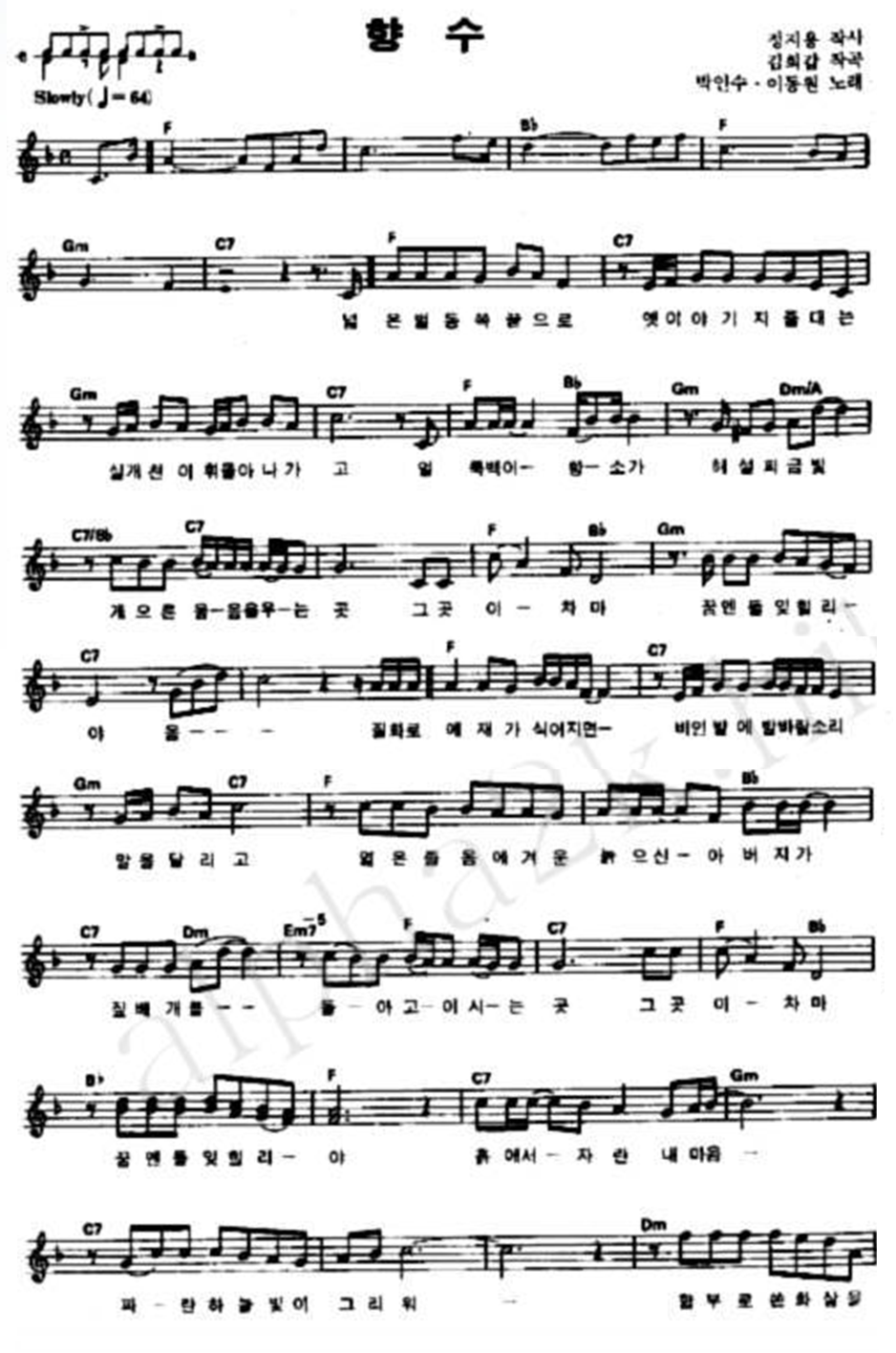 향수(이동원&박인수)-MR(F).mp3 - 따라 부르기 위해 잠시 악보 발췌