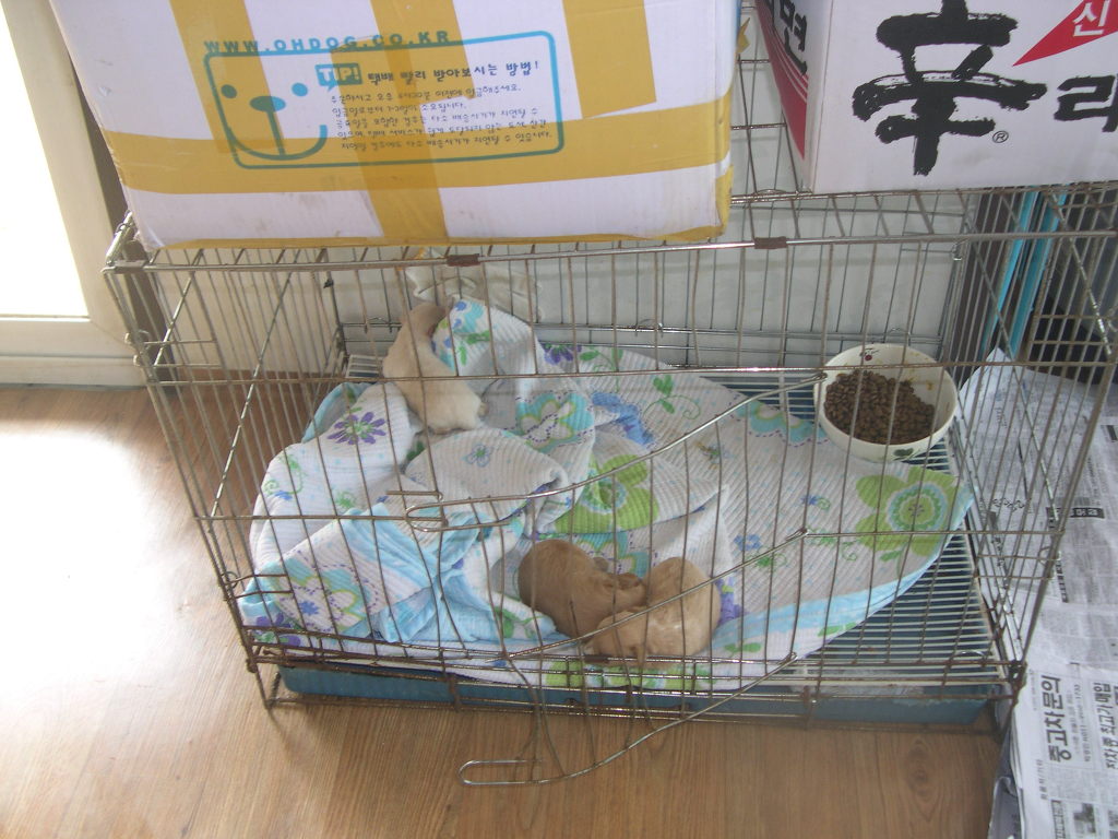 너무많아 애들이 철장 밖으로 삐져나와서복순이한데 한마리주고 공주한데 한마리주었습니다.