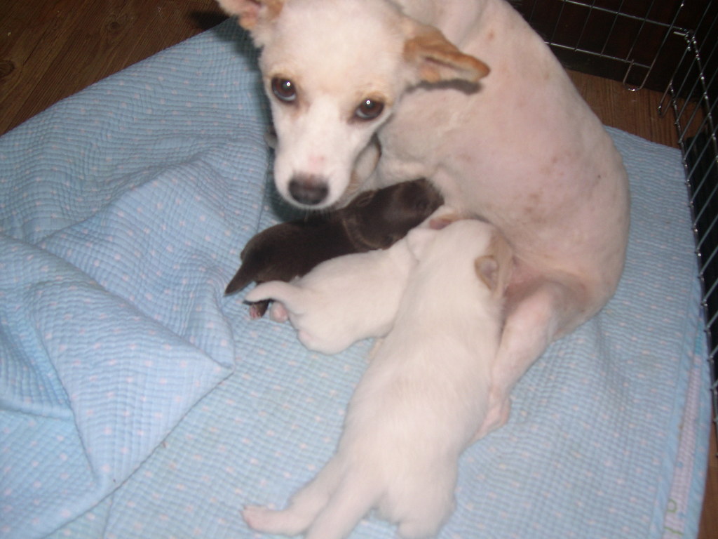 자기새끼는 제일큰놈이 젓물고있는애이고 갈색은 공주애.나머지는 뺀질이애한마리 꼬실이애 한마리.