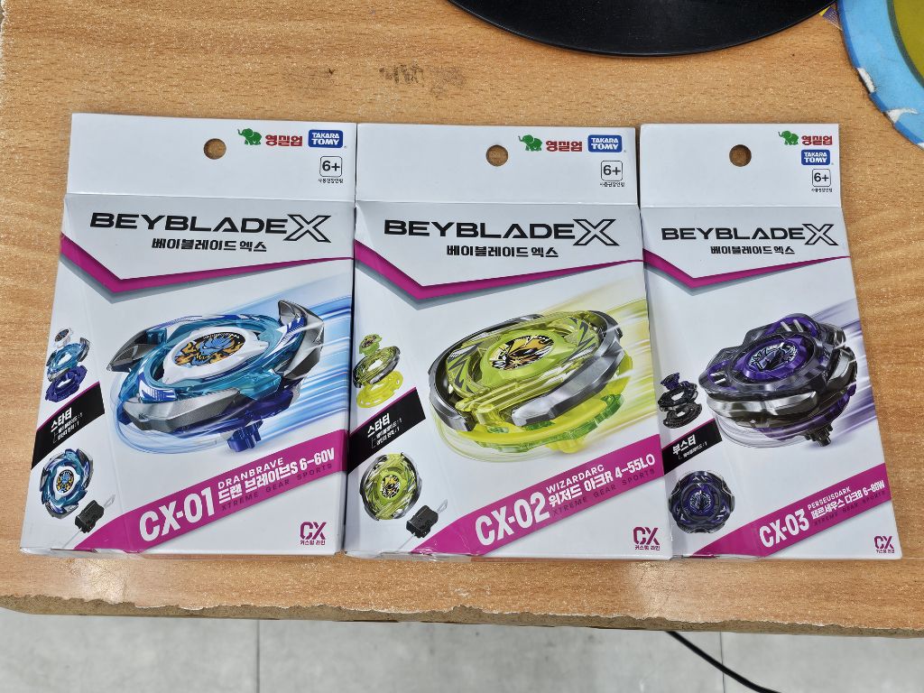 BEYBLADE_X 베이블레이드엑스 CX 커스텀라인 CX-01 드랜브레이브 S6-60V CX-02 위저드아크 R4-55LO CX-03 페르세우스다크 B6-80W 승진완구 2025년 6월 7월 여름 탐방예정