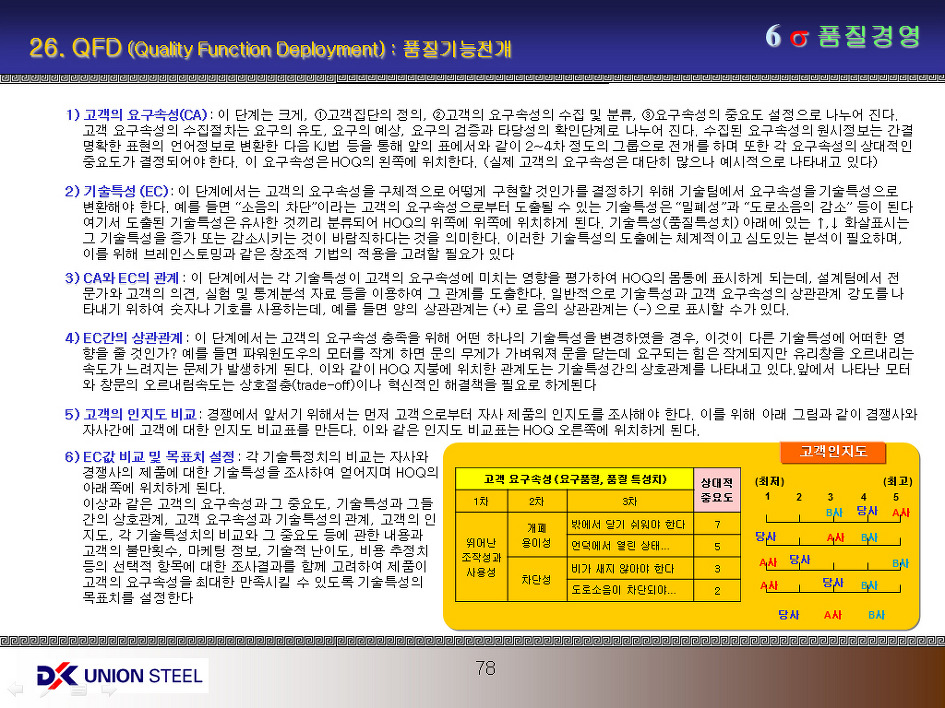 기업에서 이 QFD를 하는 이유는 결국 시장의 선점이나 아니면 경쟁이 치열한 분야에서 차별성을 얻기 위한 "최고의 제품"을 만드려는 데 있다.