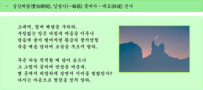 [스크랩] [법공양]그대여, 힘써 해탈을 구하라 작성자다람쥐|작성시간10.04.27|조회수70 목록 댓글 0 글자크기 작게가 글자크기 크게가 1. 난보세한심(難保歲寒心) 2. 석마회귀(石馬回歸) 3. 낙엽 4. 즉심즉불(卽心卽佛) 5. 고백 6. 만법심광(萬法心光) 7. 꽃 8. 견문각지(見聞覺知) 9. 풀잎 10. 절학도인(絶學道人) 11. 지도무난(至道無難) 12. 실상해탈(實相解脫) 13. 낙도가(樂道歌) 14. 무심도(無心道) 15. 행복 16. 십사과송(十四科頌) 17. 기도 18. 기도 19. 몽각무이(夢覺無二) 20. 누가 하늘을 보았다 하는가 21. 천진(天眞) 22. 하늘이 보이는 때 23. 보이고 들리고 생각나는... 24. 마음이 만 가지 경계를... 다음검색 스크랩 원문 : 방생♥ 현재 게시글 추가 기능 열기 북마크 공유하기 신고 센터로 신고 댓글 댓글 0 댓글쓰기 답글쓰기 댓글 리스트