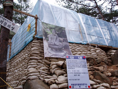 석조여래좌상을 현재 보수하고 있는 곳과