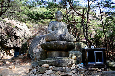 불상 앞에는 흔들바위, 왼쪽에는 부부가 껴안고 있는 형상의 부부바위가 있다.