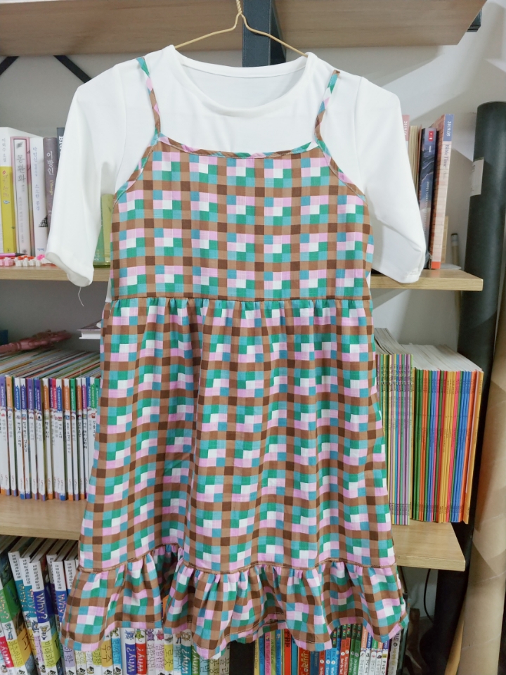 딸아이 원피스 만들고 남은걸로 동서 딸아이 원피스 만들었어요. 시어머니가 만들어주라고 하시네요.