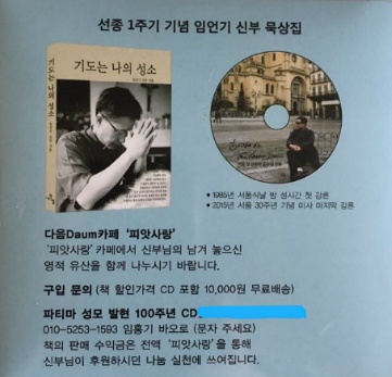 안녕하세요. 카페지기 임바오로입니다. 신부님이 안 계셔도 피앗사랑에 늘 함께 해주시는 회원 여러분께 진심으로 감사드립니다. 이 CD는 신부님이 2014년 미국에서 파티마의 세계 사도직(푸른 군대)회원들에게 100주년을 준비하며 3일간 하신 피정 강의를 편집한 것입니다. CD가 나오게 된 과정을 말씀 드린다면, 2015년 5월 신부님이 녹음해 둔 피정 강의를 CD로 제작했습니다. 그러나 CD를 구입해도 7시간을 듣기가 쉽지 않다고, 2시간으로 요약해서 다시 만들기로 약속하고, 준비하시다가 선종하셨습니다. 저와는 깨어진 마지막 약속이 되어 버렸고, 파티마 메시지를 전파하려는 신부님의 그 열망은 끝내 이루지 못하고 떠나셨습니다. 저는 파티마 성모발현 100주년이 된 올해 사순절에 CD를 편집해야겠다는 강한 충동이 일어났습니다. 그러나 7시간을 삼분의 일로 줄인다는 것은 불가능한 일이었습니다. 12번의 발현이 이어져야 하고, 중요한 부분은 빠지면 안되고, 또 자연스러워야 하고... 저는 한 달 동안 CD 속에 파묻혀 살았고, 잠을 자도 신부님 강론 소리에 잠을 이루지 못했습니다. 그러나 완성되어 드디어 5월31일 성모님 엘리사벳 방문축일날 CD 50박스가 저의 집에 도착했고, 저는 성모님께서 저의 집에 방문하셨다고 여겨졌습니다. 그중 몇 분의 얘기를 소개해 드리겠습니다. 며칠 전 신부님의 책을 많이 보급해 준 자매님을 만났는데, 그동안 순회하는 파티마 성모상을 따라 4군데를 다녀서 너무나 좋았다면서, 그러나 뭔가 채워지지 않는 영적 갈증이 남았는데 이 CD 가 채워 줄 것 같다면서 헤어졌습니다. 다음 날 새벽에 이런 문자가 왔습니다. "찬미 예수님! 어제 밤 신부님 CD 잘 들었습니다. 제 영혼에 단비를 맞이한 귀한 시간이 되었습니다. 오늘도 다시 듣고~ 제 마음이 흡족해질 때까지 몇 번이고 들어야겠습니다. 하늘에 계신 신부님과 형제님께 진심으로 감사드립니다." 그리고 신부님을 한 번도 뵌 일이 없는 자매님이, 미국 아들 집에서 책을 읽고 너무나 감동해서,한국에 돌아와 신부님 산소에 두 번이나 다녀오셨고 책도 많이 보급해 주셔서, CD를 보내 드렸더니 이런 글을 보내왔습니다. "주차장 차 속에서 다 듣고 왔습니다. 혼자 듣기 아까와요. 누구에게 먼저 들려 줄까 고민 중입니다. 제가 살아 생전에 신부님의 피정에 참석할 수 있었더라면 얼마나 좋았을까! 이제라도 이 귀한 강론을 접하고 듣게 해 주신 주님과 형제님께 진심으로 감사드립니다. 파티마 얘긴 듣고 알고 있었지만 이렇게 자세하고 뚜렷한 기적 역사를 듣고 마음으로 확신을 갖을 수 있어 감명 받았습니다. 다시 한 번 감사드립니다!" 또 어느 단체 회장님도 문자를 보내 왔습니다. "너무 좋은 말씀이라 봉사자님들께 꼭 3번이상 들었으면 좋겠다고 권했습니다. 정말 수고하셨습니다. 감사합니다. 참가하는 회원들께도 그렇게 권할 생각입니다!" 그동안 뜸했던 책주문도 CD가 나오고서 다시 주문이 들어 오고 있습니다. 며칠 전 40대 젊은 부부가 책을 읽고 너무나 감동되어 책과 CD를 주문해서 보내 드렸습니다. 지금 글을 쓰고 있는데 문자가 왔네요! "신부님 말씀 듣고 있습니다. 이렇게 성스러운 말씀을 듣게 해 주셔서 감사합니다. 바오로님, CD를 출퇴근시 듣고 있는데 정말 짱이예요!" 회원 여러분! 선종하신 분의 CD를 올해가 100주년이 아니라면, 내용이 파티마 메시지가 아니라면, 어떻게 보급하겠습니까! 이 시대에 파티마 메시지가 얼마나 중요한지를 제대로 아시는 분이 정말 드물고, 알더라도 요약해서 전하기는 어렵습니다. 그러나 신부님 CD 를 통해 꼭 듣기만 하면 됩니다. 주님과 성모님이 신부님을 통해서 애타게 전하시는 메시지를 알려야 합니다. 그리고 신부님의 삶과 영성이 깃들어 있는 묵상집 '기도는 나의 성소' (서품 첫강론과 30주년 강론CD)도 보급해야 합니다. 가까운 가족 친지들에게, 나의 대부모 대자녀들에게, 신부님 수녀님께, 가까운 교우분들과 지인들에게 선물도 하시고, 적극적으로 홍보도 해 주시길 부탁드립니다. CD를 듣고 책을 읽으시는 분들의 신앙생활에 도움을 주고, 영적인 자극이 된다면 얼마나 가치가 있고 보람된 일일까요! 천국에서 성모님과 신부님께서 기뻐하시는 모습이 그려집니다. 긴 얘기 끝까지 읽어 주셔서 감사합니다. * CD-1세트 2장 136분 가격-2천원(무료배송) 010-5253-1593 임홍기 바오로 (주소와 성함-문자주세요) 계좌번호 국민은행 994401-01-271499 임홍기