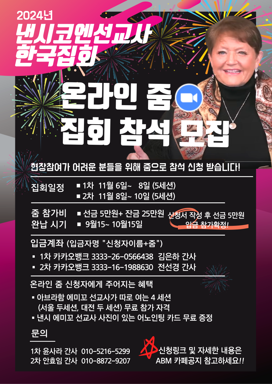 ■ 비대면(에미꼬 아브라함 대면 집회 못 참석 하신 분들만) ㅡ 따로 줌으로 사역 해드릴 예정(날짜는 미정)