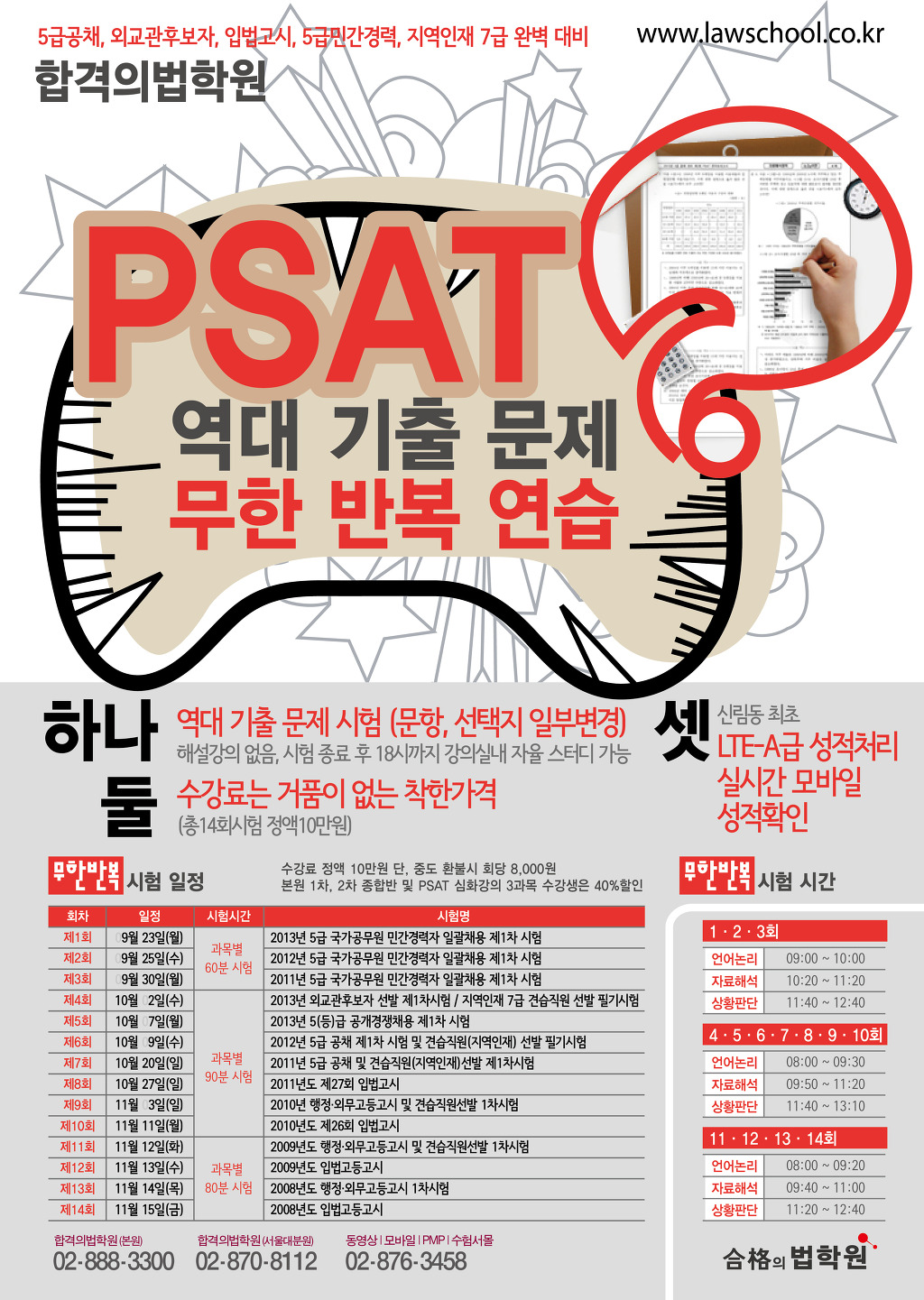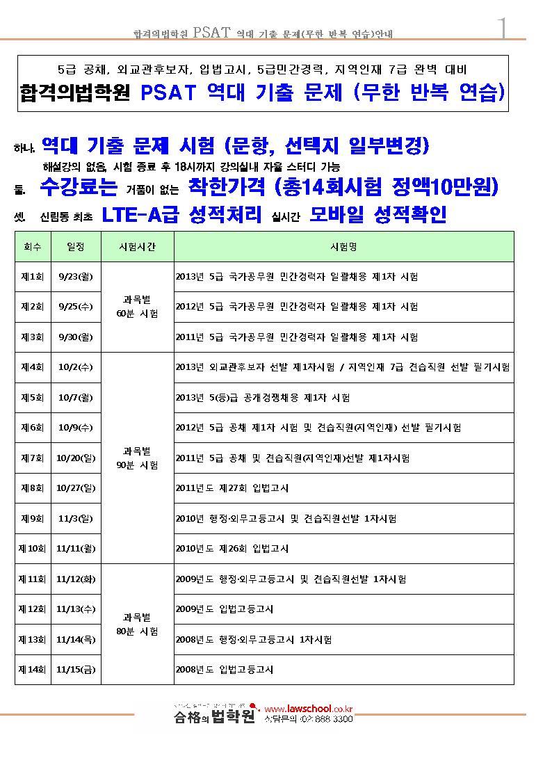 [합격의법학원] PSAT 역대 기출 문제 무한 반복 연습[문항, 선택지 일부변경]-[총14회시험 정액 10만원]-선착순마감 작성자합격법학원|작성시간13.09.13|조회수75 목록 댓글 0 글자크기 작게가 글자크기 크게가 130913_PSAT_역대기출문제_안내문_배포용.hwp 첨부파일첨부된 파일이 4개 있습니다. jpg 파일 img_psat_130913.jpg 다운로드 jpg 파일 222001.jpg 다운로드 jpg 파일 222002.jpg 다운로드 hwp 파일 130913_PSAT_역대기출문제_안내문_배포용.hwp 다운로드 다음검색 현재 게시글 추가 기능 열기 북마크 공유하기 신고 센터로 신고 댓글 댓글 0 댓글쓰기 답글쓰기 댓글 리스트