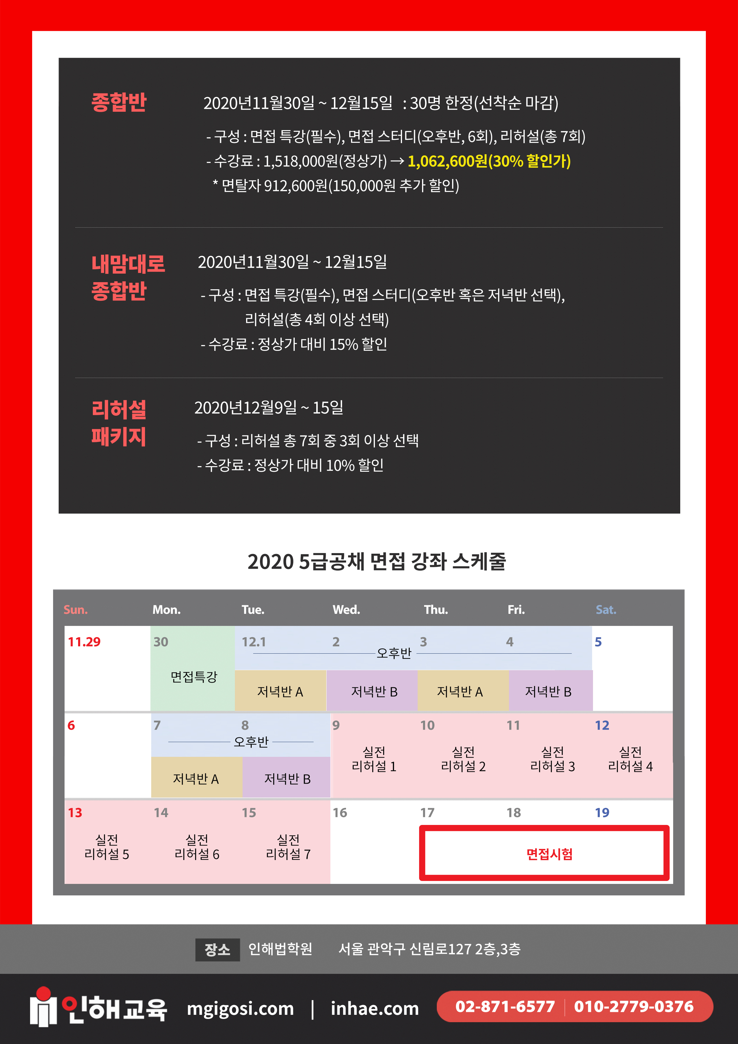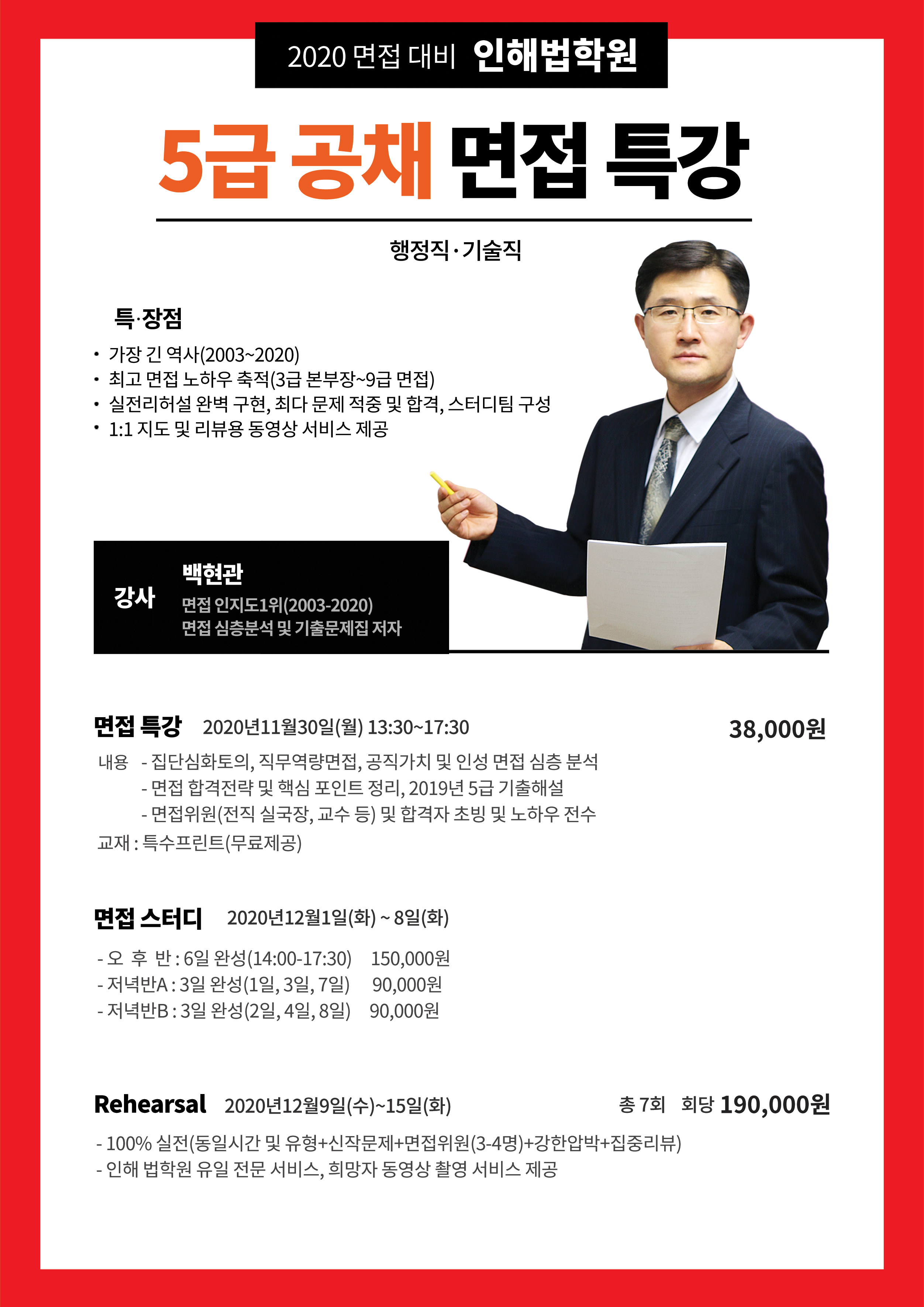 5급 공채(기술고시, 행정고시) 면접 특강(2003년부터 지금까지 가장 긴 역사, 최고 노하우 축적) 작성자인해|작성시간20.11.29|조회수839 목록 댓글 1 글자크기 작게가 글자크기 크게가 코로나 19로 인하여 집단토의가 제외될 경우 실전리허설은 5만원 할인해 드립니다.종합반의 경우 18명 한정 접수 받습니다. 최고의 면접 강의를 보장합니다. 다음검색 현재 게시글 추가 기능 열기 북마크 공유하기 신고 센터로 신고 댓글 댓글 1 댓글쓰기 답글쓰기 댓글 리스트 작성자인해 작성자 본인 여부 작성자 | 작성시간 20.11.29 외교관 후보자 면접 역시 코로나19때문에 집단토의가 생략된채 역량면접과 공직가치 및 인성면접으로 진행되었습니다. 기술고시 역시 집단토의가 빠질 경우 실전리허설은 5만원 빼드립니다. 감사합니다. 댓글 전체보기