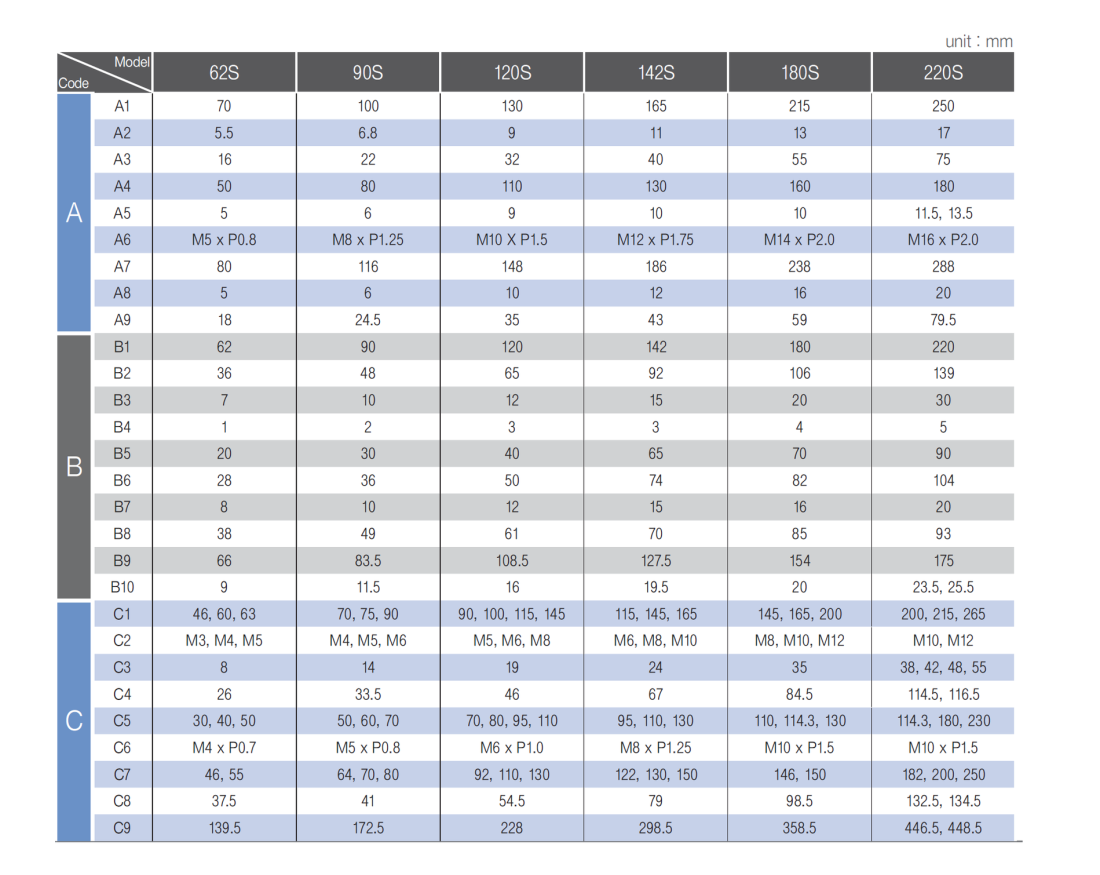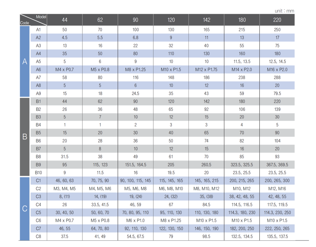 | PGX180-H-070 | PGX180-H-080 | PGX180-H-090 | PGX180-H-100 | | | | |