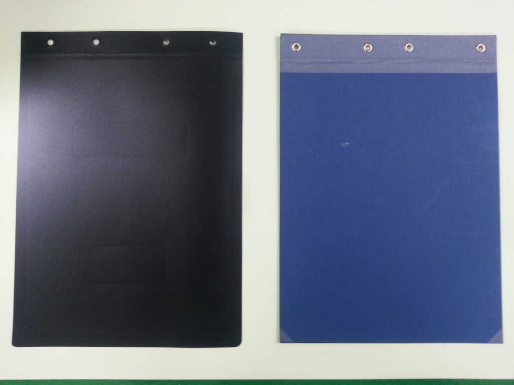 위 사진에서 왼쪽 사진은 '흑표지 pp 상철'로 검은표지 플라스틱으로 만든 상철이고