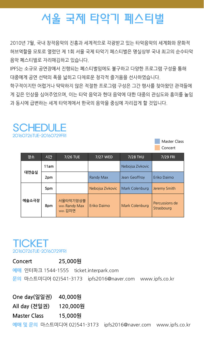 서울 국제 타악기 페스티벌(이하 IPFS)이 2016년 여름 다시 찾아옵니다!