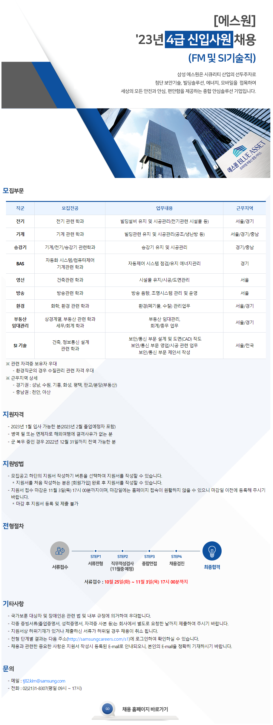 [에스원] 23년 4급 신입사원 채용(FM 및 SI기술직)