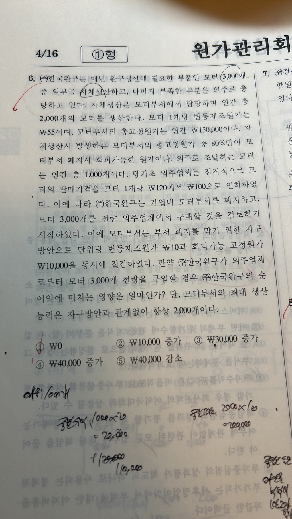 기존에 외주 구입비가 단위당 120원에서 100원으로 인하되었으면 기존에 1000개 구입하던게 20원만큼 이익을 봐서 20,000원만큼도 수익에 포함시켜야 한다고 생각했는데 아닐까요?