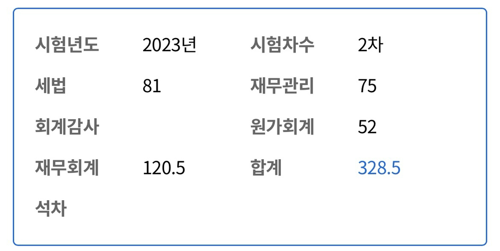 2023년에는 퇴직소득세가 출제가 되었는데 운이 좋게 전날에 퇴직소득세 문제를 풀었어서 점수를 획득하는데 도움이 많이 되었던 것 같습니다. 퇴/양/상만 챙겼는데 이 부분은 시험 가장 직전에 풀어보는게 실제 시험에서도 점수를 받을 확률이 높은 것 같습니다. 또한 세법 2차 시험 특성상 사이즈가 큰 편이고 여러 주제들을 결합해서 묻는 경향이 있으므로 법/소/부의 빈출 유형들은 반드시 맞출수 있도록 잘 정리해놓아서 시간 내에 푸는 연습을 많이 했던게 도움이 되었던 것 같습니다.