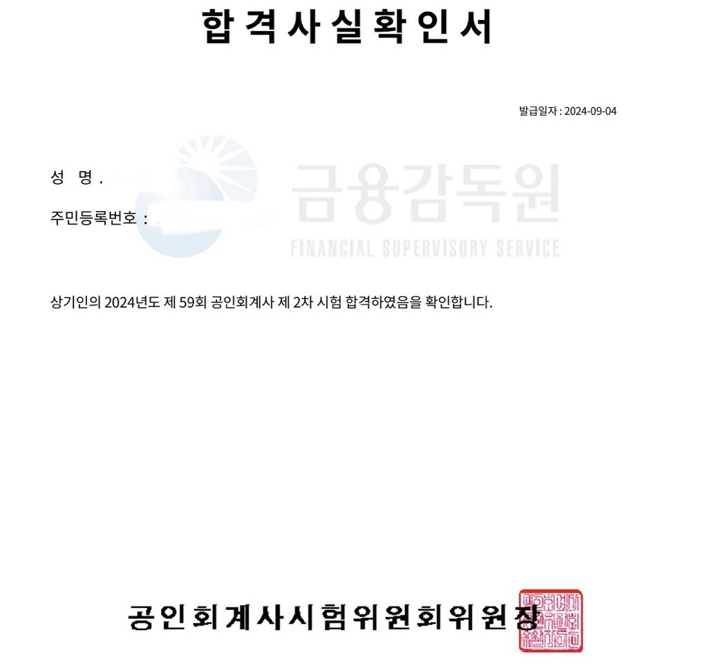 안녕하세요:) 원감 2과목 유예생활을 포함하여 약 2년반의 수험생활을 거쳐 2024년 제59회 공인회계사 시험에 최종 합격하게 되었습니다. 작년에 1차 합격 수기를 쓰고 도움이 되었다는 반응이 많았어서 올해도 이 시험을 진입하려고 하거나 준비하는 분들에게 조금이나마 도움이 되고자 최종 합격 수기를 쓰게 되었습니다.
