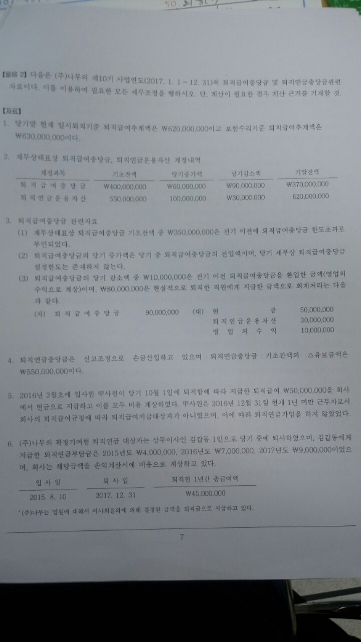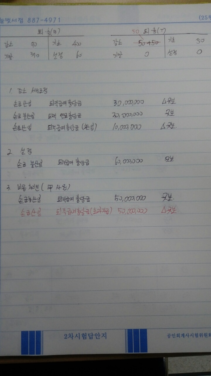 퇴충관련 세무조정만 해보았습니다