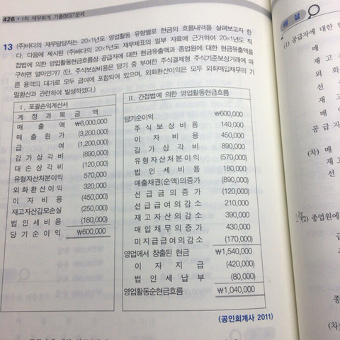 그래서 문제 자료에 간접법 현금흐름 구할때 당기순이익에서 가산한거 맞죠?