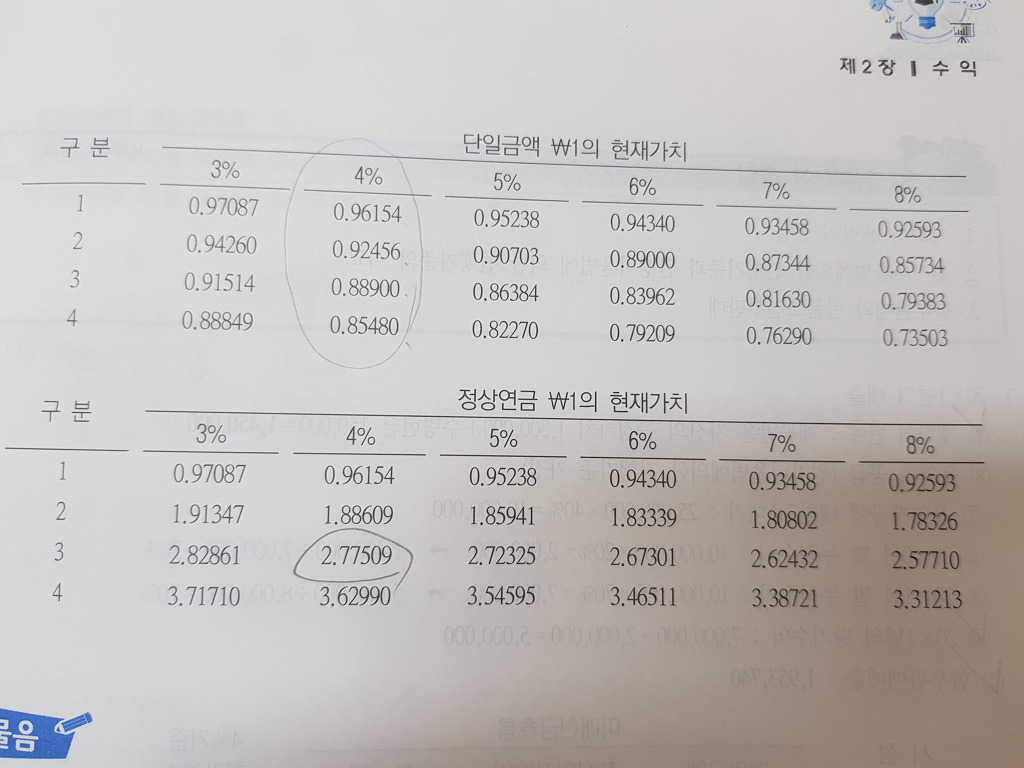 [질문]재무)김기동t 수익파트 단수차이 작성자밍밍공부|작성시간18.07.13|조회수195 목록 댓글 1 글자크기 작게가 글자크기 크게가 3번 물음에 현재가치 구할때 , 단일금액 현재가치의 0.96154+0.92455+0.88900으로 할때랑 연금금액 현재가치 2.77509로 할때 단수차이 5가 생기는데, 답지보니깐 단일금액 현재가치로 구했도라구요. 단수가 5생기는데 연금금액 현재가치로 해두 주관식인데 갠찮나요? 다음검색 현재 게시글 추가 기능 열기 북마크 공유하기 신고 센터로 신고 댓글 댓글 1 댓글쓰기 답글쓰기 댓글 리스트 작성자존버가이긴다 | 작성시간 18.07.13 다들 2.77509로 쓸듯굳이 더해서 쓸필요엏는거같은데요 댓글 전체보기