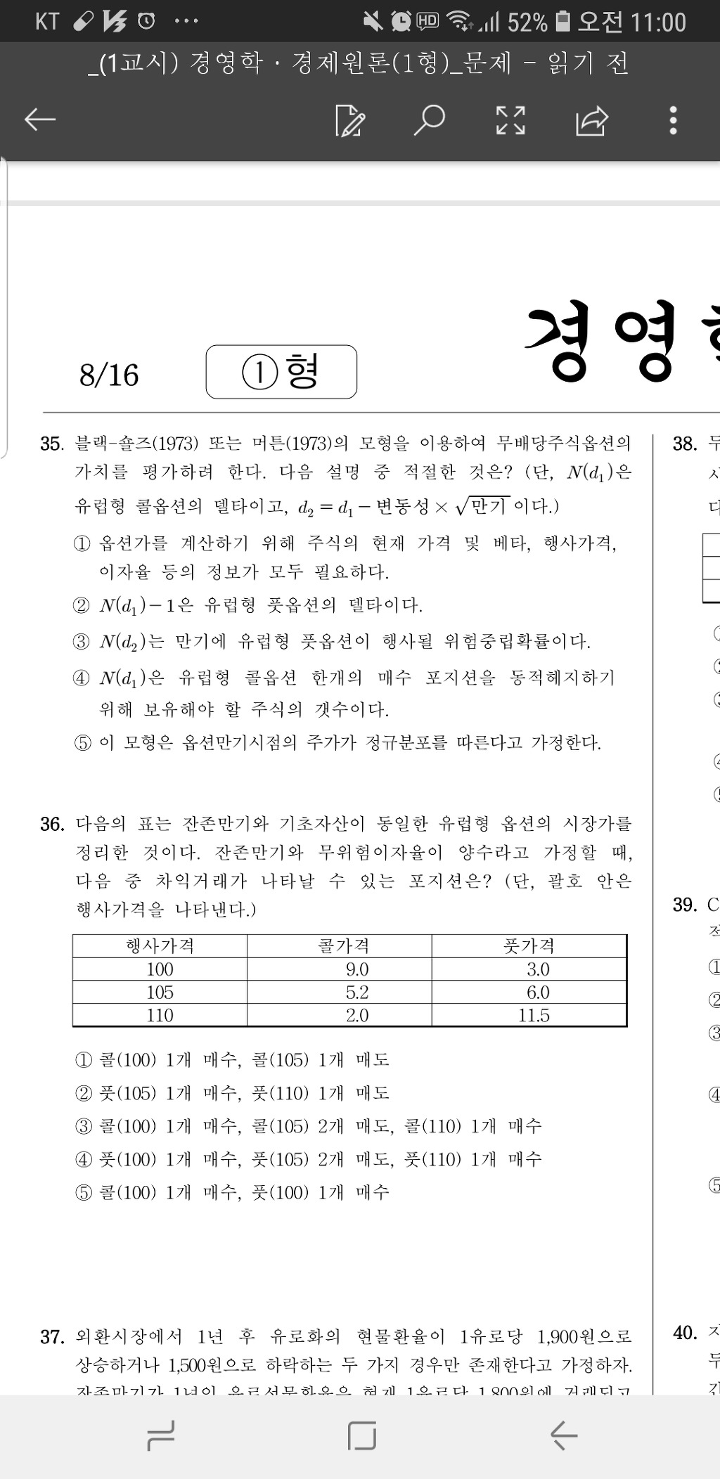 [질문]작년 기출 재무관리 질문드립니다 작성자19년 초시생|작성시간18.11.06|조회수199 목록 댓글 3 글자크기 작게가 글자크기 크게가 35번문제에서 답은 2번인걸 알겠는데 5번 지문이 약간 헷갈리네요 블랙숄즈 모형은 표준정규분포가 아니라 로그정규분포 모형이라 틀린 지문인건가요?? 설명부탁드리겠습니다!! 다음검색 현재 게시글 추가 기능 열기 북마크 공유하기 신고 센터로 신고 댓글 댓글 3 댓글쓰기 답글쓰기 댓글 리스트 삭제된 댓글입니다. 답댓글 작성자19년 초시생 작성자 본인 여부 작성자 | 작성시간 18.11.06 잘 이해가 안가서 그런데 한번만 더 설명 가능하실까요 ㅠㅠ?? 수익률이 정규분포라는게 위험중립확률을 사용해서 정규분포라면 s(1+rf)한게 주가인데 이건 정규분포가 아니고 수익률만 정규분포인게 무슨 말인지 잘 이해가 안갑니다ㅜㅜ 답댓글 작성자19년 초시생 작성자 본인 여부 작성자 | 작성시간 18.11.06 올포유우 감사합니다! 가정이니 그냥 암기하고 넘어가야겠네요 댓글 전체보기