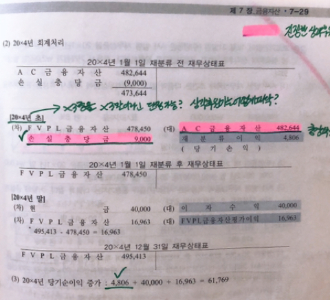 문제2) FVPL ~> FVOCI 재분류, X4말 손실충당금 존재