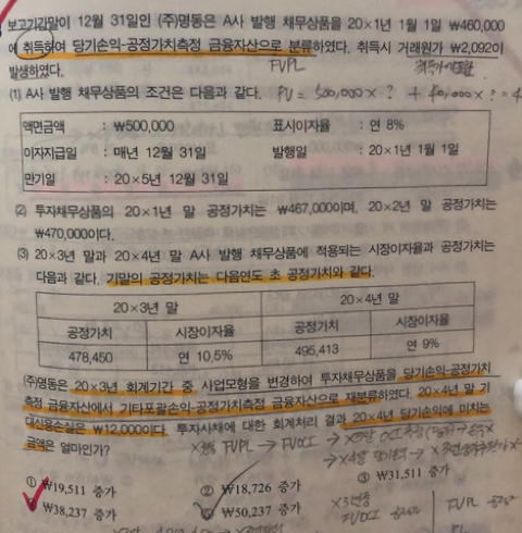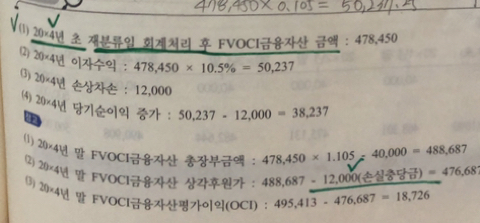 ~> X4말 FVOCI로서 이자수익, 평가손익 구할때,