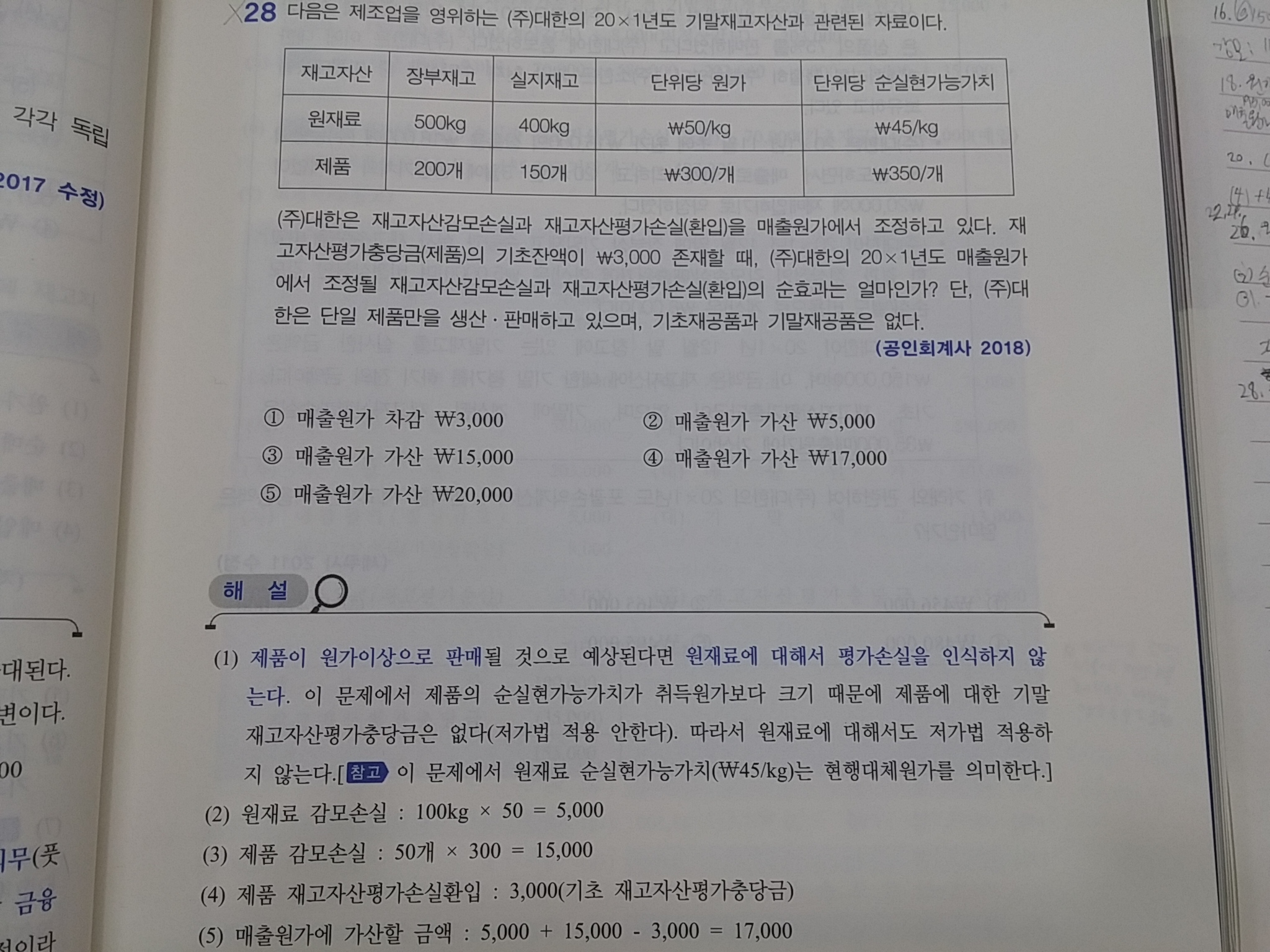 1. 매출원가에서 재고자산감모손실과 재고자산평가손실(환입)을 조정하고 있다는데 왜 정답이 가산인가요?