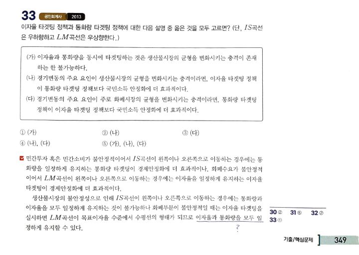 문제 해설 중 마지막 부분(제가 밑줄치고 물음표한 곳)이 이해되지 않네요... 분명 이론 내용에는 통화량과 이자율을 동시에 타게팅하는 것이 불가능하다고 하였는데요. 해설을 읽어보면 화폐시장이 불안정할 경우에는 동시 타게팅이 된다는 것처럼 나와있네요ㅠㅠ