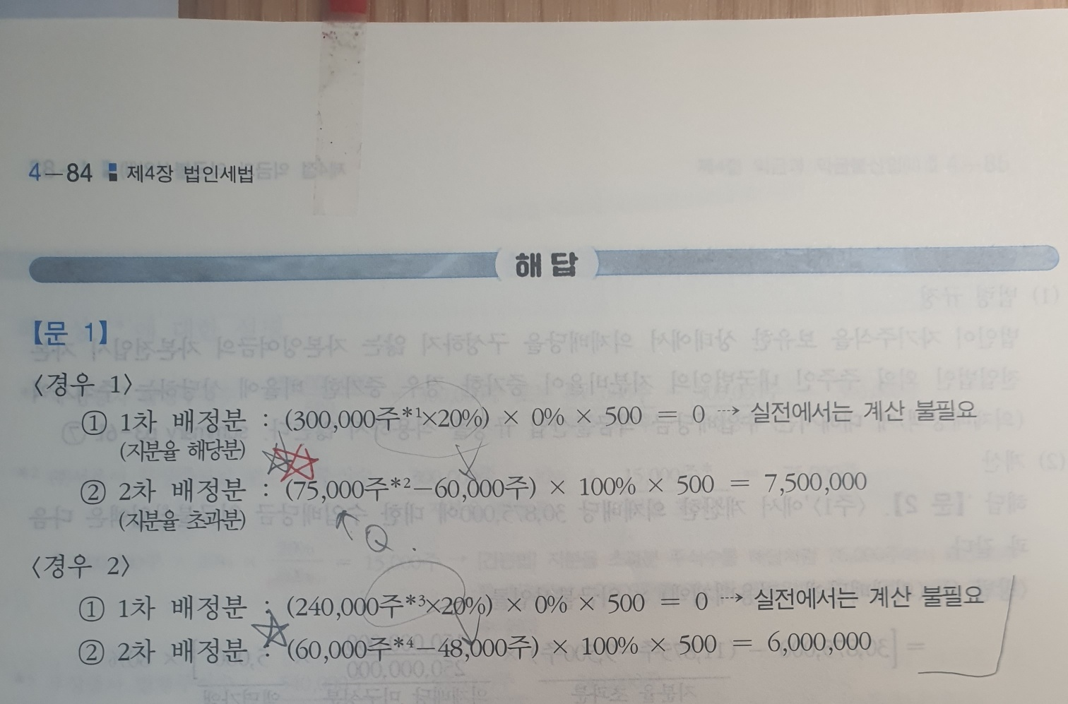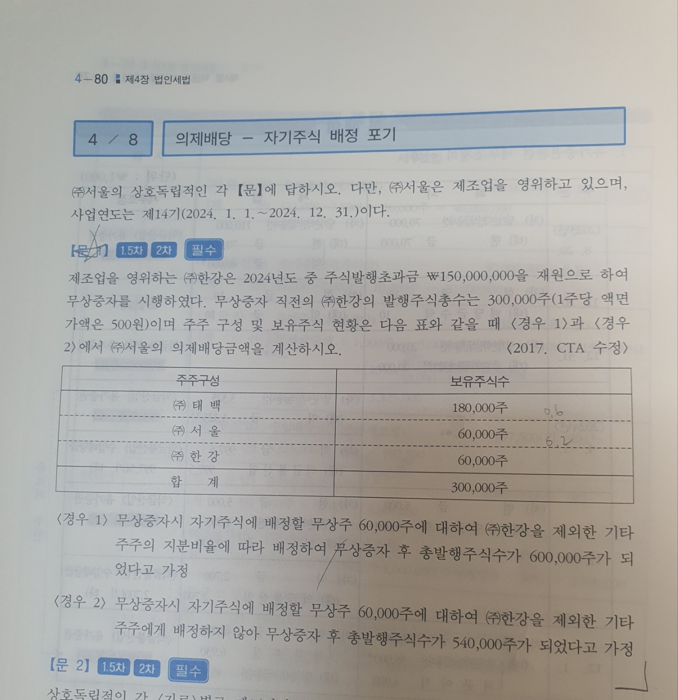 경우1의 과정은 조금 복잡하니까 결론만 기억하시려면 위에 홍익인간님께서 말씀해주신데로 300,000주 x 20/80 하시면 됩니다이미지 확대