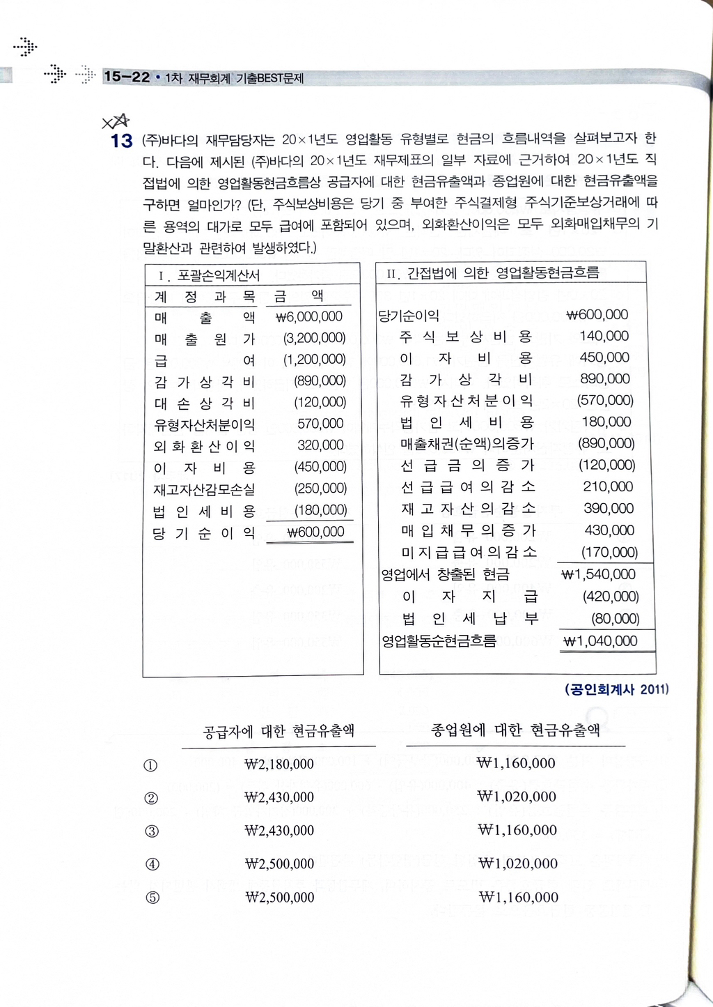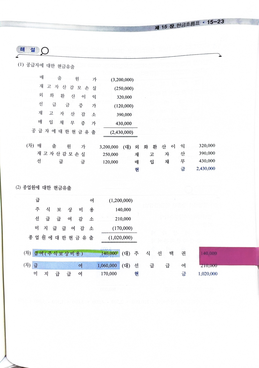 급여 관련 현금흐름 계산할 때에는 취소하는 이유가
