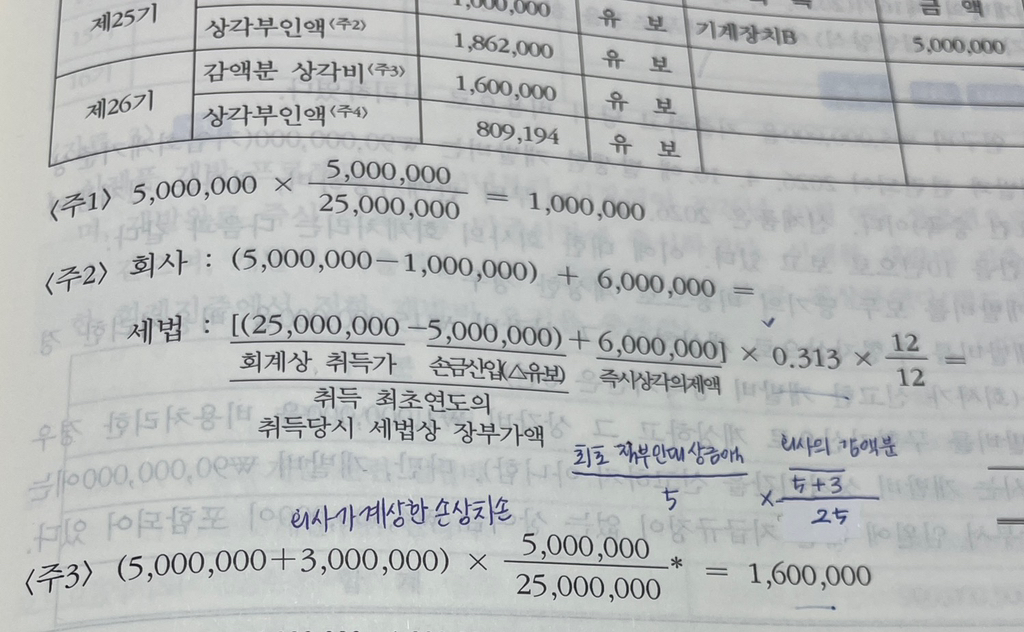 반면 즉상의(자산 계상할 것을 비용계상함)는 회사가 애초에 취득가액으로 계상한 것이 아닌 비용으로 계상했으므로 직부인 대상 감가비가 아닙니다. 즉상의는 취득가액 25에서 발생한 감가비가 아니니까요.