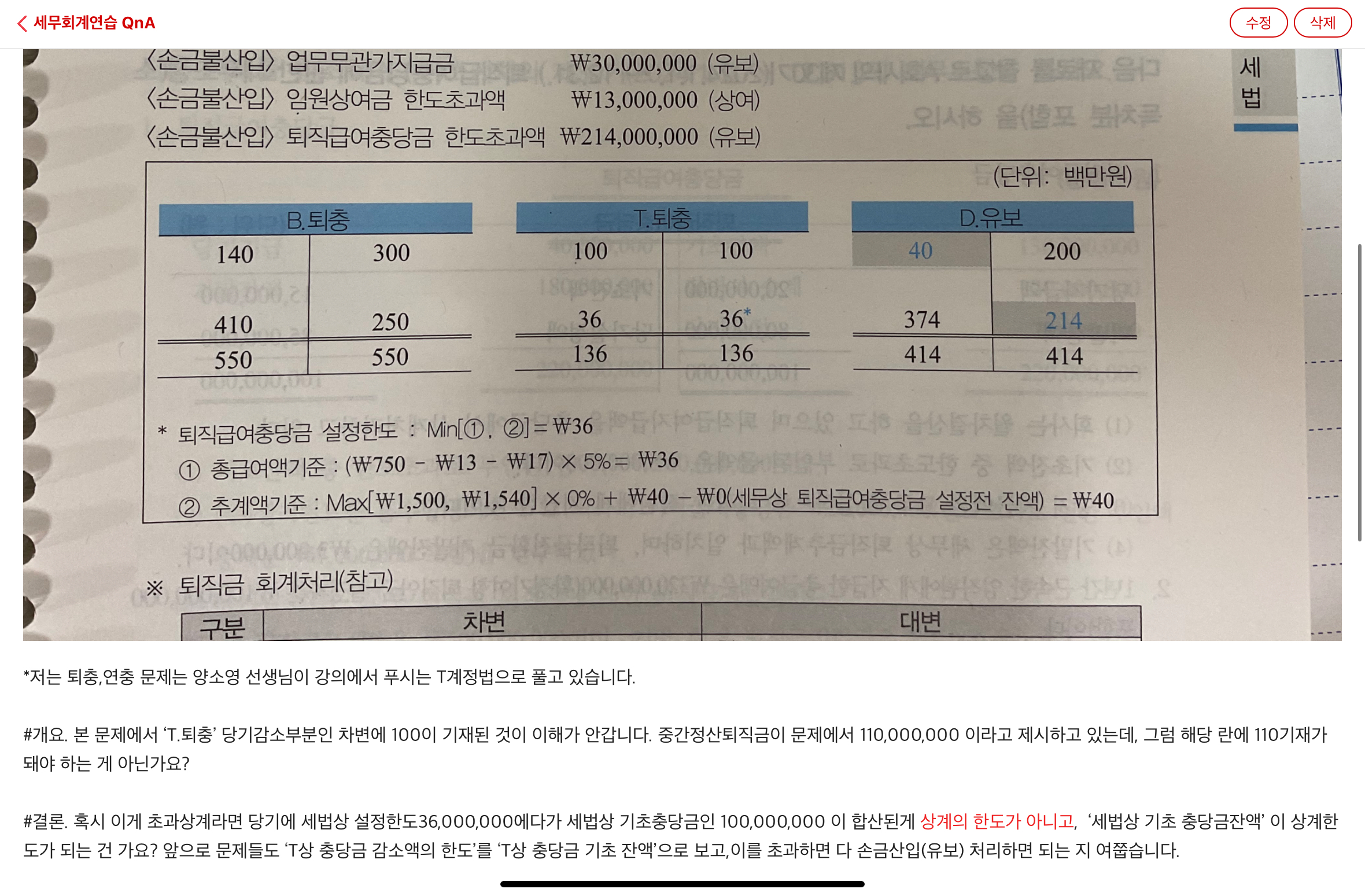 (8월에 답변을 못 받았습니다.)24세무회계연습 [ 238-6 / 법인세 / ch.6 충당금과 준비금 ] 퇴직급여충당금 초과상계?