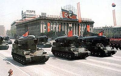 -.위협적인 북한군의 자주식 지대지 미사일 부대의 열병 모습