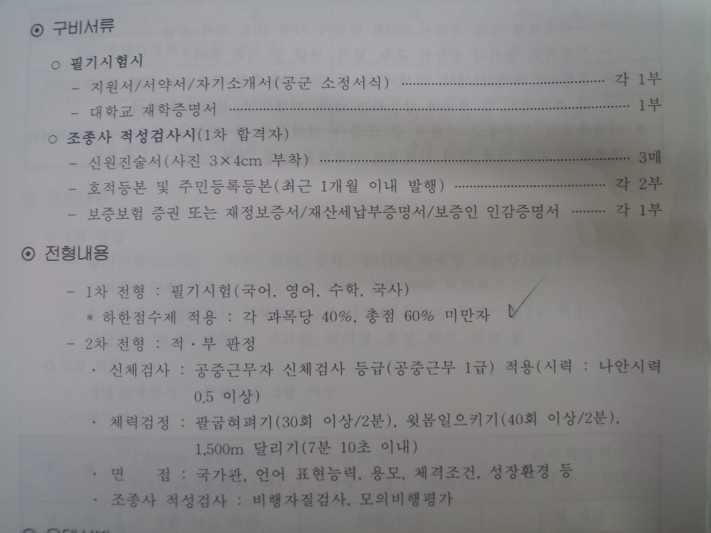 국사, 영어(공인영어점수로 대체 가능)로 필기시험 과목이 축소 및 완화 되었으며