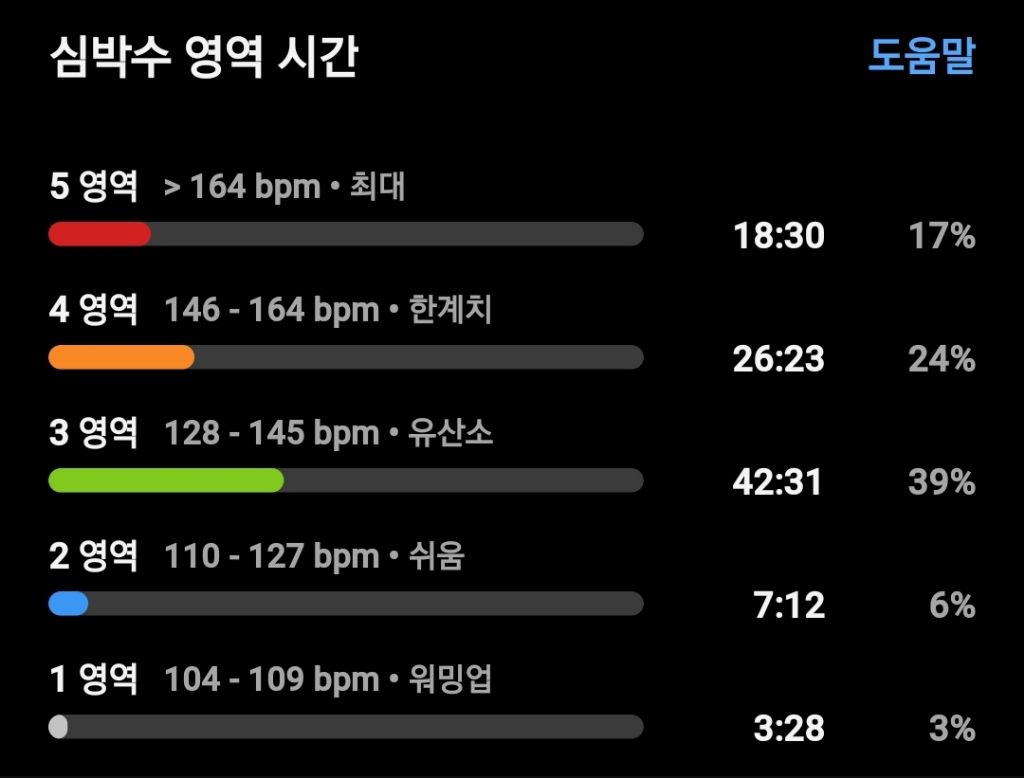 저는 요즘 가민시계의 ZONE을 활용한 달리기를 하려 노력중입니다.