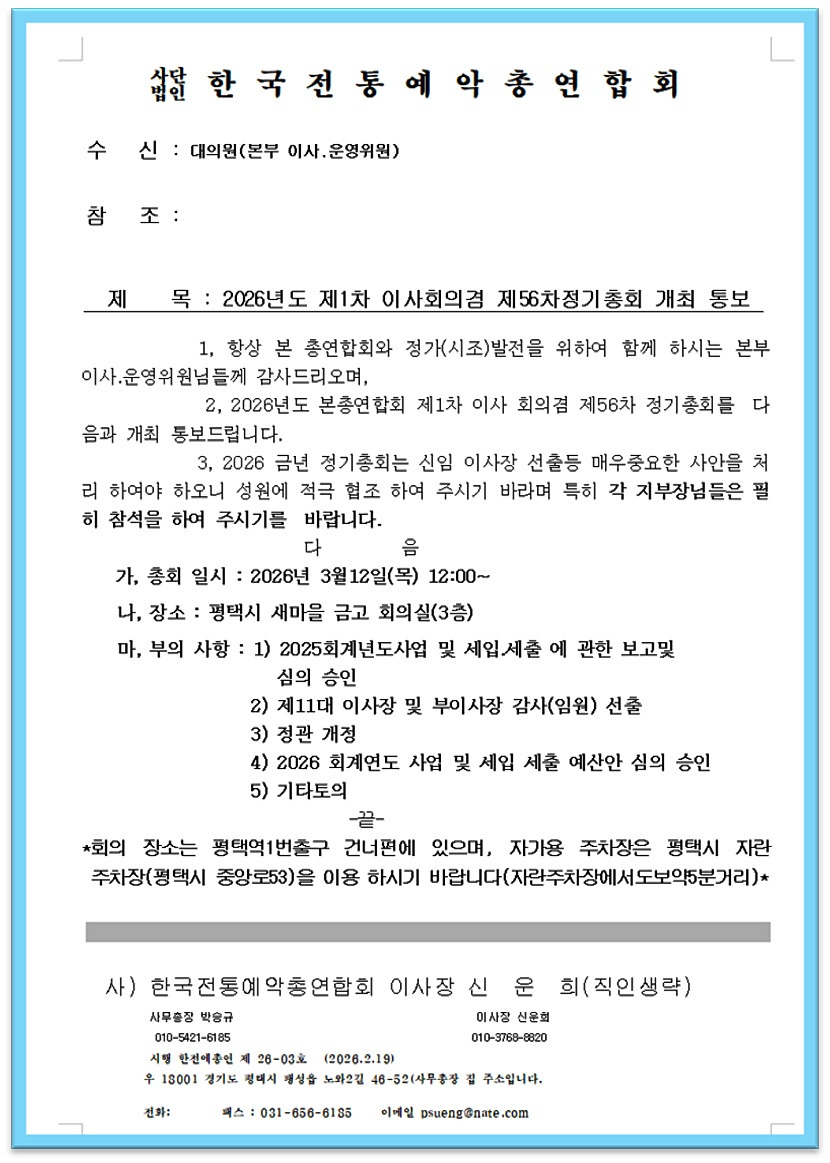 2026 제1차 이사회의겸