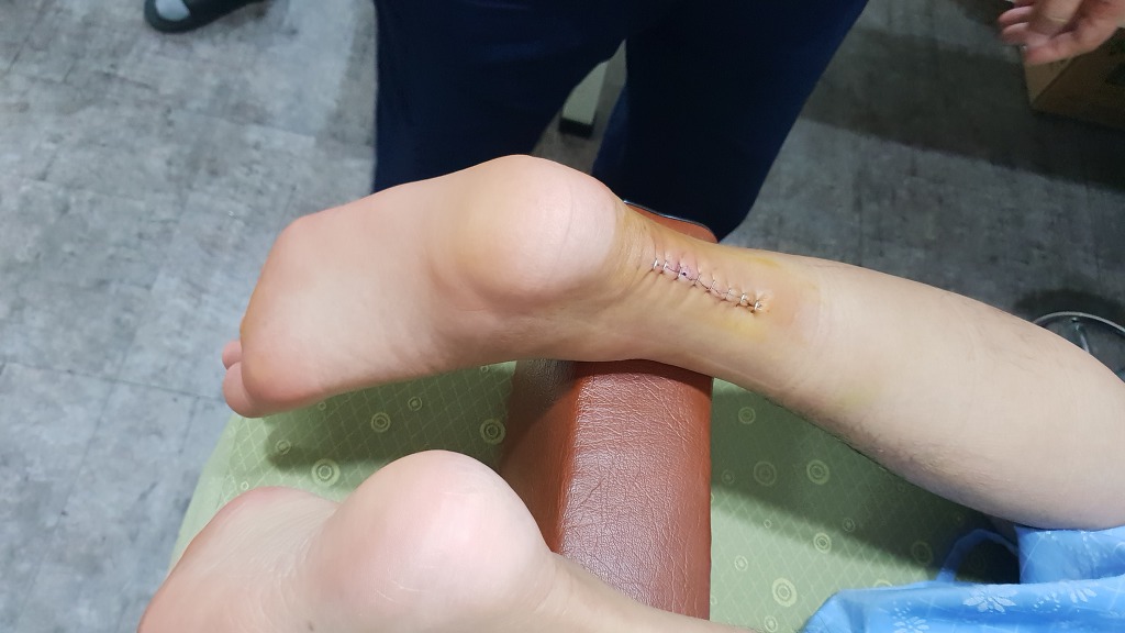아래쪽 3부분만 실로 나머진 녹는실로 봉합했더라고요~ 벌어짐은 없었습니다.