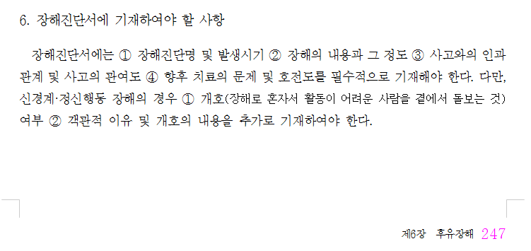장해진단서에 기재되어야 하는 내용은 다음과 같은데요.