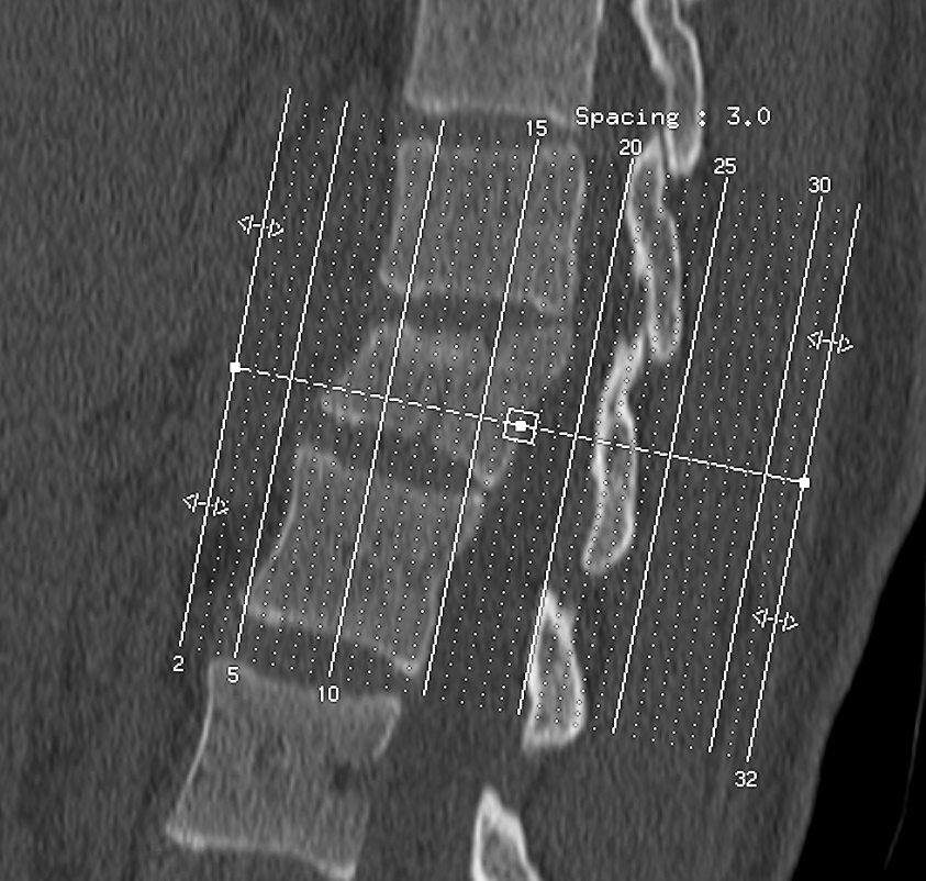 압박률은 골절된 척추를 기준으로 윗 척추의 길이와 아래척추의 길이를 구해서 평균을 낸 후