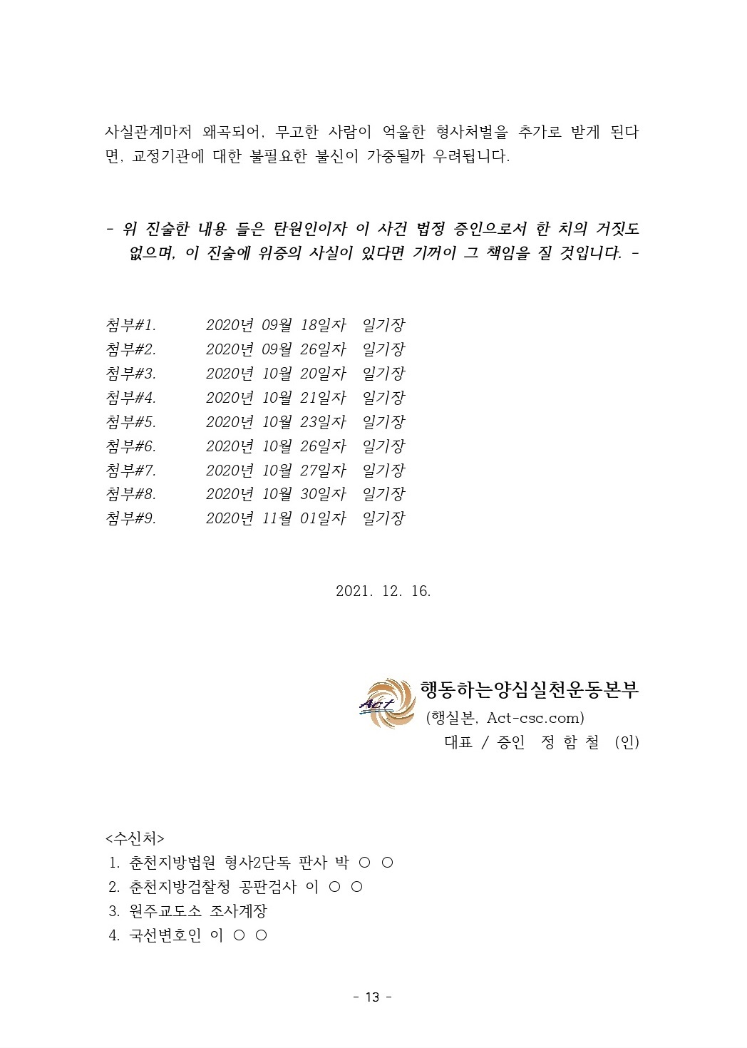 - 행동하는양심실천운동본부(행실본, Act-csc.com) 대표 정함철 010-4379-1051