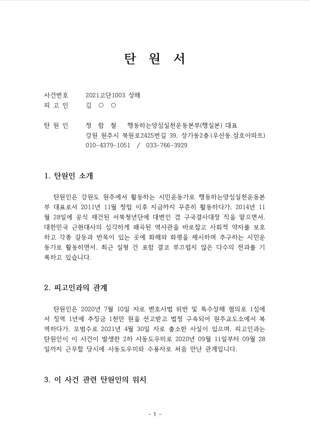 금일(12.16) 법원과 검찰측에 탄원서를 제출하고, 12월 20일에 춘천지방법원에 증인출석하게 되었습니다.