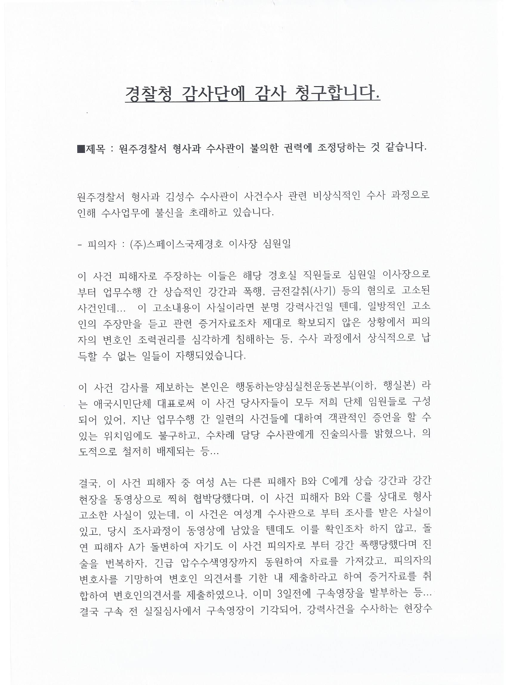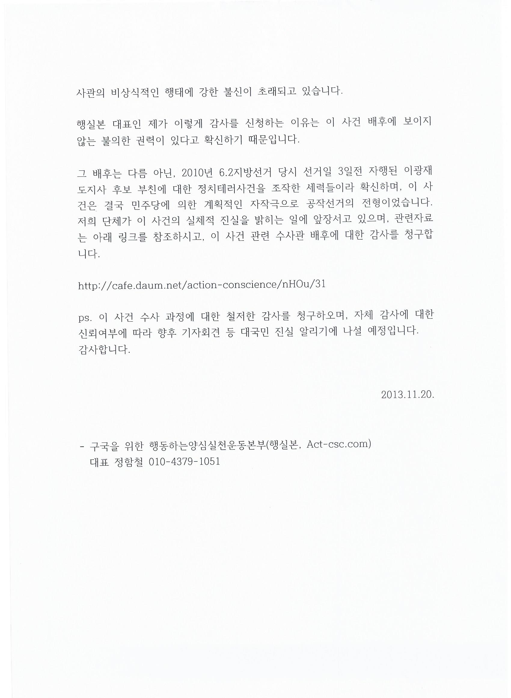 1. 2013.11.20. 작성하여 경찰청 감사단에 감사 청구한 서류 2매.