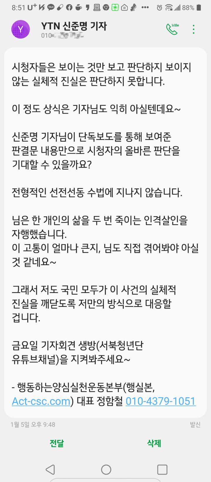 “무책임한 인격살인 보도를 자행한 YTN 신준명 기자와 보도책임자는 엄중히 대국민사죄하고 합당한 피해배상을 져야 할 것이다!”