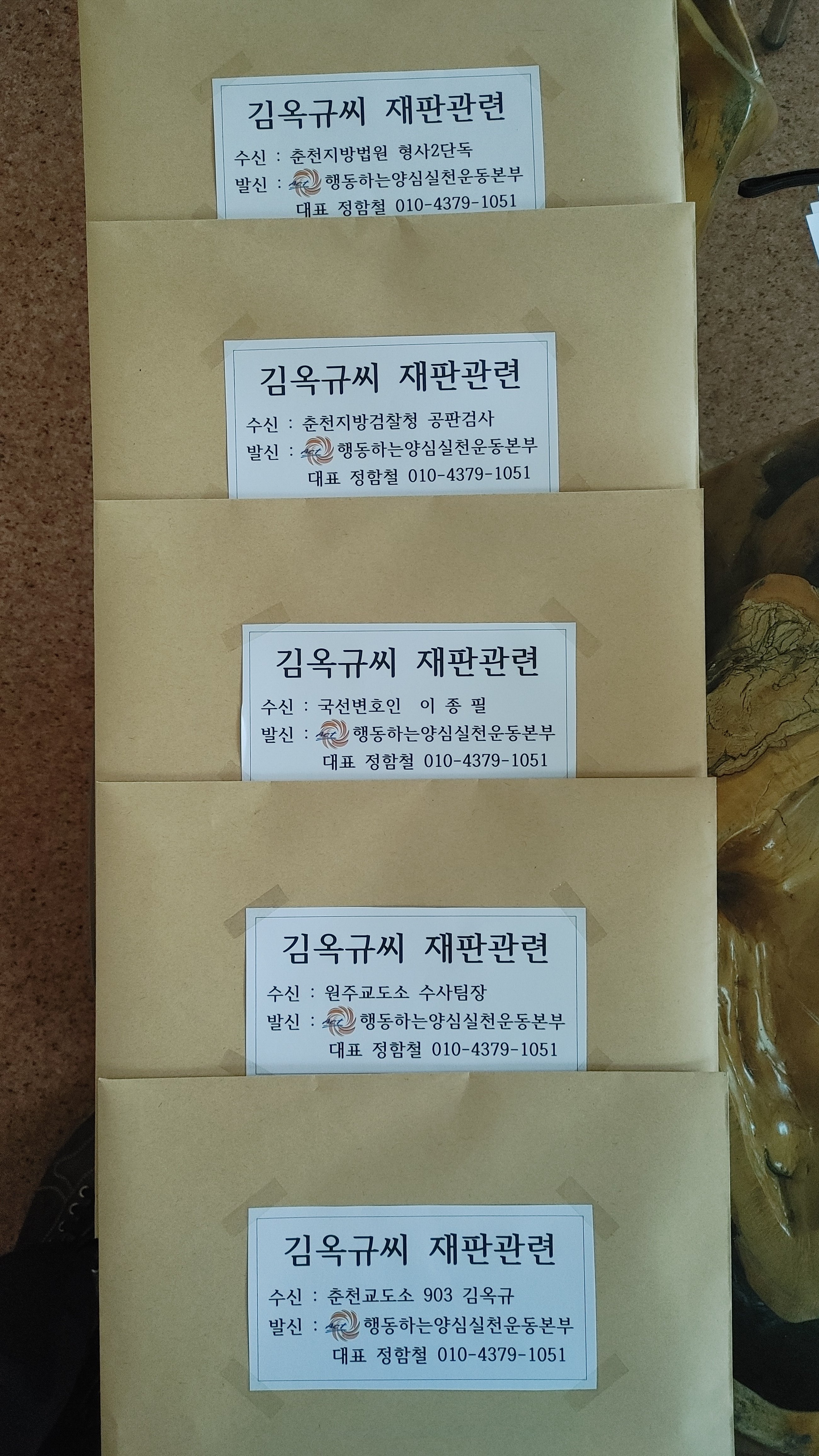 지난 1월 28일에 원주교도소를 방문하여 수사팀장과 면담을 했었는데, 이 사건을 담당했던 수사팀장은 다른 곳으로 근무 발령 나고 새로운 분이 근무하고 계셔서, 이 사건의 초동수사가 잘못됐음을 명확히 밝히고, 결자해지 차원에서 원주교도소에서 이 사건을 재수사할 것을 법원에 요청해야 하지 않겠냐고 전달한 사실이 있습니다.