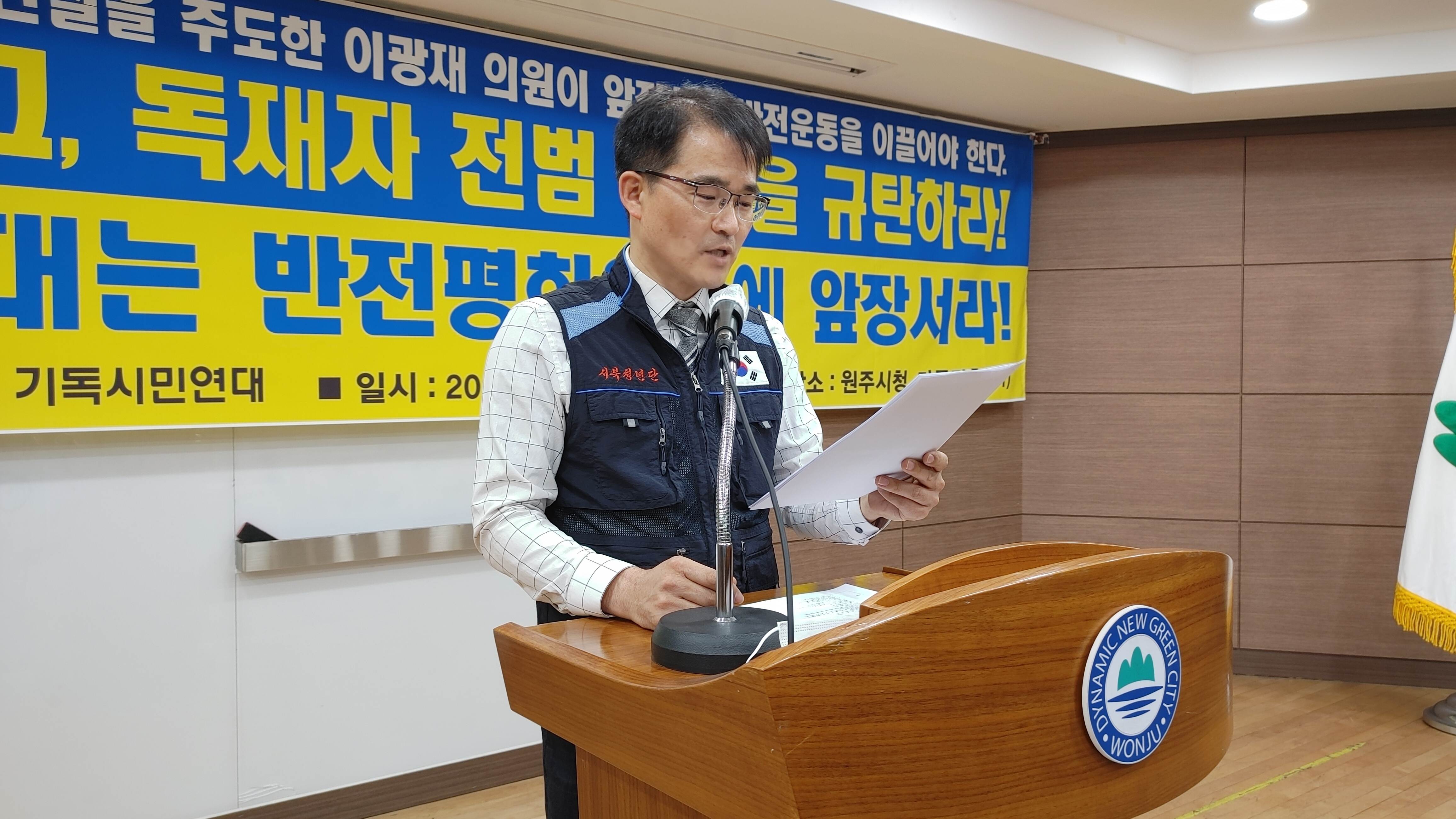 원주시 공무원의 정치편향적인 공무집행을 규탄한다.