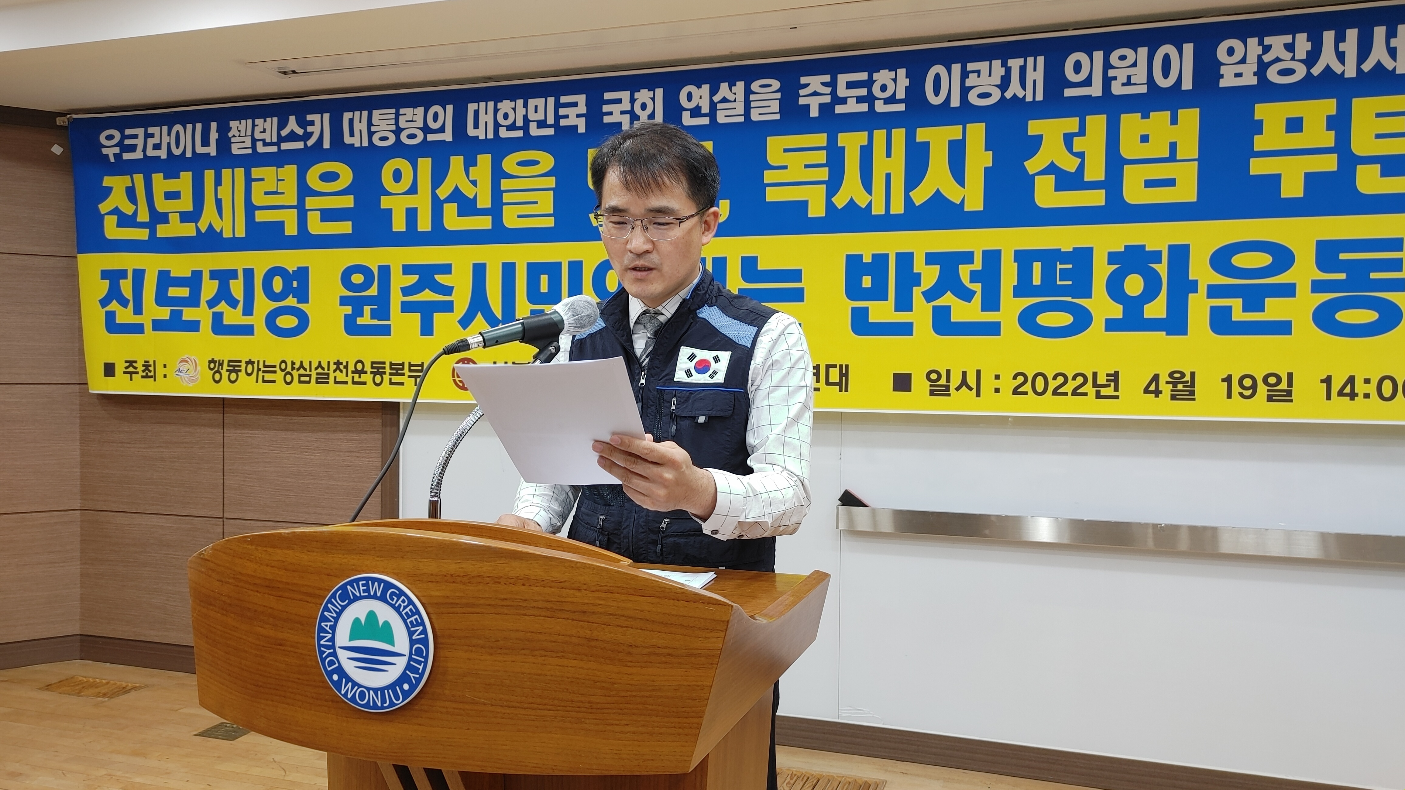 지난 3월 9일 대선을 앞둔 시점에서 정치적 상황보다 우크라이나 국민들의 무고한 생명이 더 이상 희생되는 것을 막기 위한 반전 집회의 일환으로, 3월 5일(토)에 원주의료원 사거리에서 1차 집회를 시작으로 매주 화요일과 토요일에 반전평화집회를 개시한 사실이 있다.